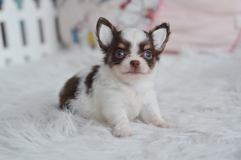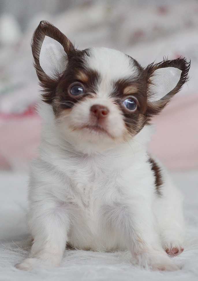 "น้องโจลี่" ชิวาวา เพศเมีย ขนยาว สีขาวชอคโกแลต ราคา 11500 บาท (รูป 3-4)