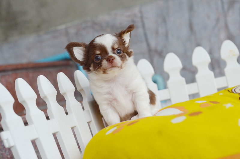 "น้องลูกแพร" ชิวาวา เพศเมีย ขนยาว สีขาวชอคโกแลต ราคา 13500 บาท (รูป 5-6)