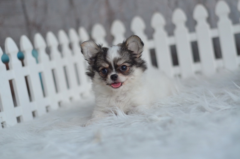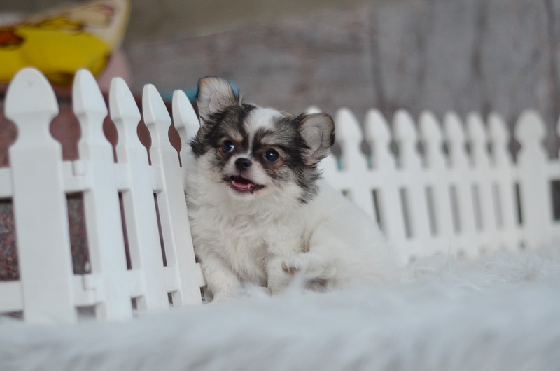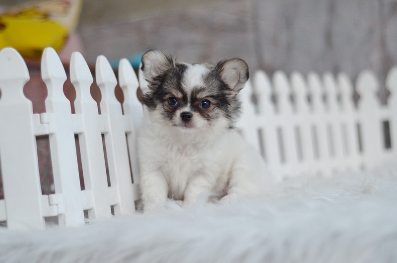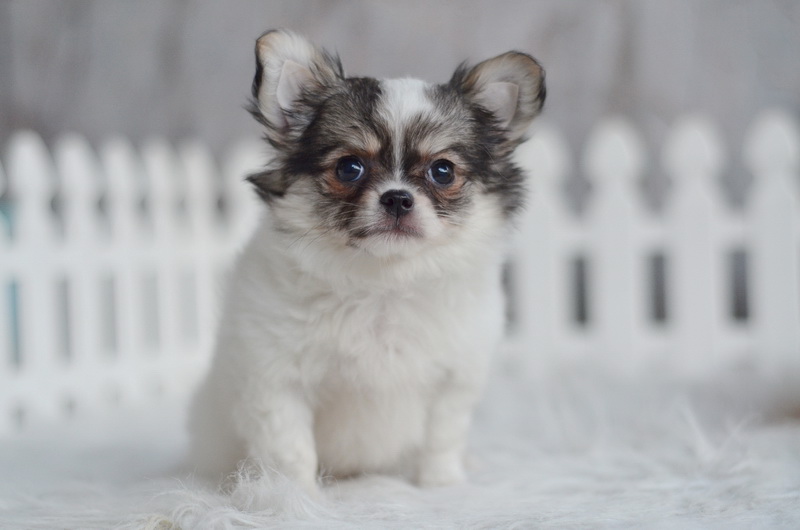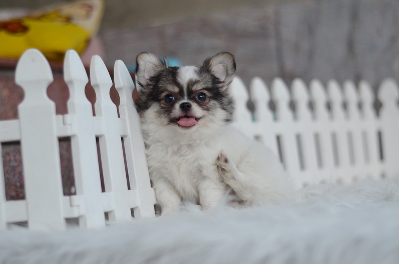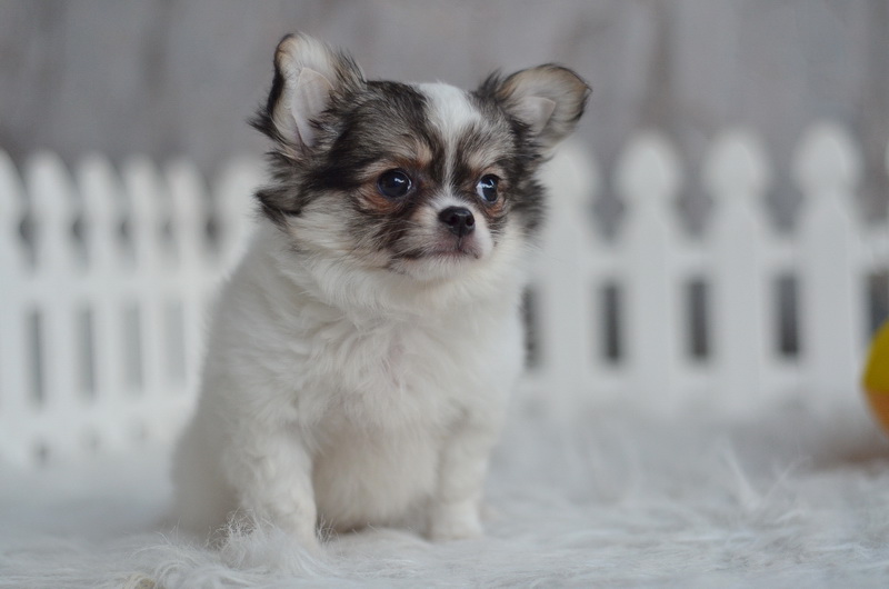 ชิวาวา เพศเมีย ขนยาว สีขาวน้ำตาล ราคา 9500 บาท