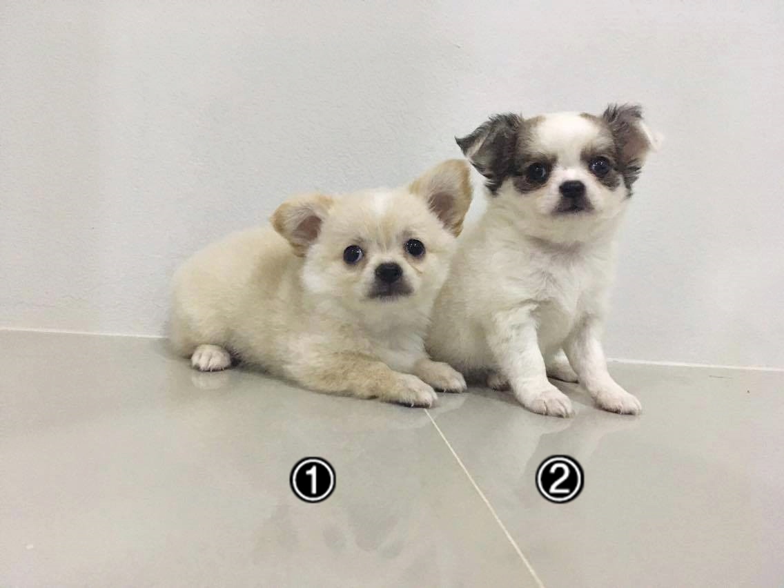 ชิวาวาขนยาวเพศผู้ 2 ตัวราคาตัวละ 3500 บาท น้องหมาถ่ายพบาธิและฉีดวัคซีนแล้ว 2 เข็ม สนใจติดต่อ 0867309364 Line : chanok282