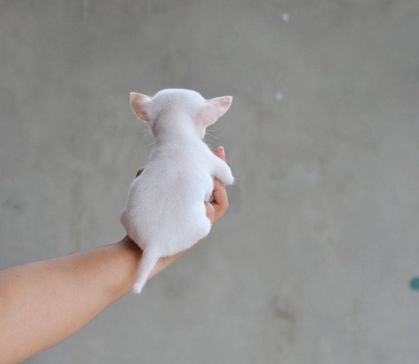 ชิวาวาเพศขนสั้น สีขาวหลังหูครีม หน้าสั้น หัวโตสวยมาก ราคา 9500 บาท