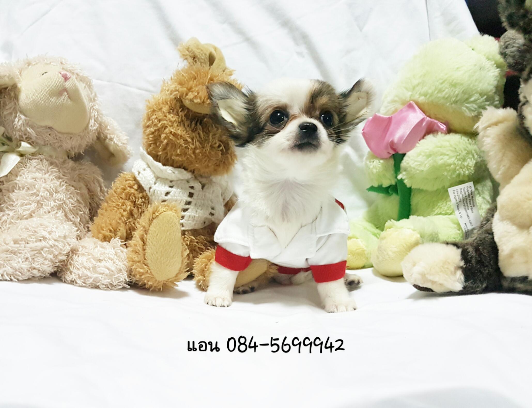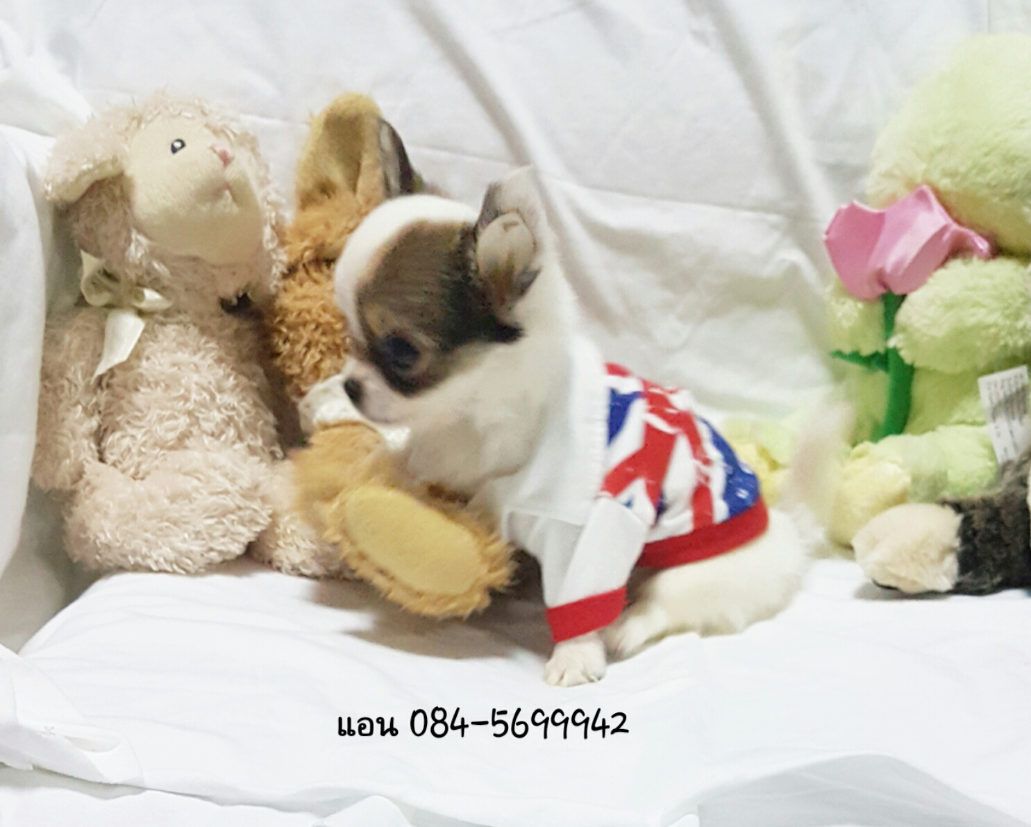 ชิวาวาขนยาว สีขาวน้ำตาล เพศผู้ ไซร์เล็ก ลงวัคซีนเข็มแรกแล้ว พร้อมย้ายบ้าน