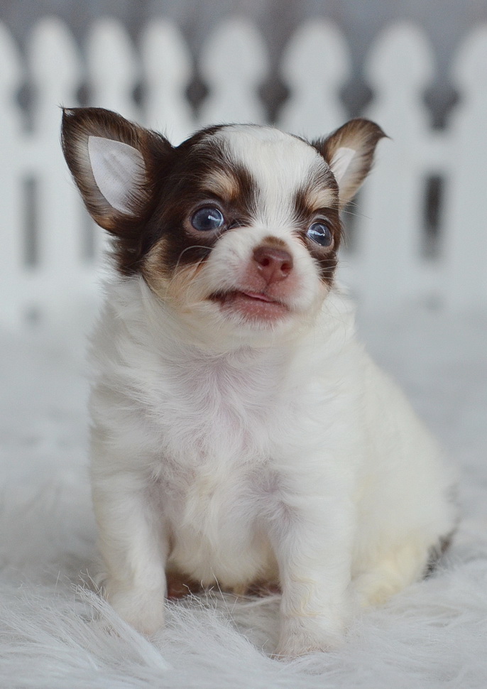 "น้องจิ๋วหลิว" ชิวาวา เพศผู้ ขนยาว สีขาวชอคโกแลต ราคา 13500 บาท (รูป 2.)