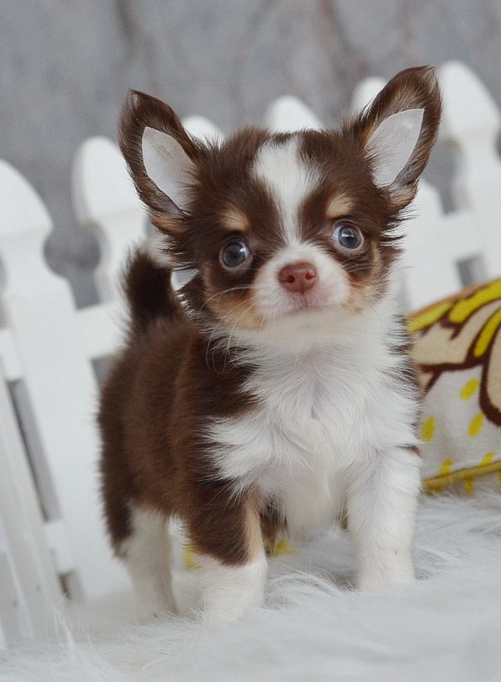"น้องเจคอป" ชิวาวา เพศผู้ ขนยาว สีขาวชอคโกแลต ราคา 9500 บาท (รูป 1.)