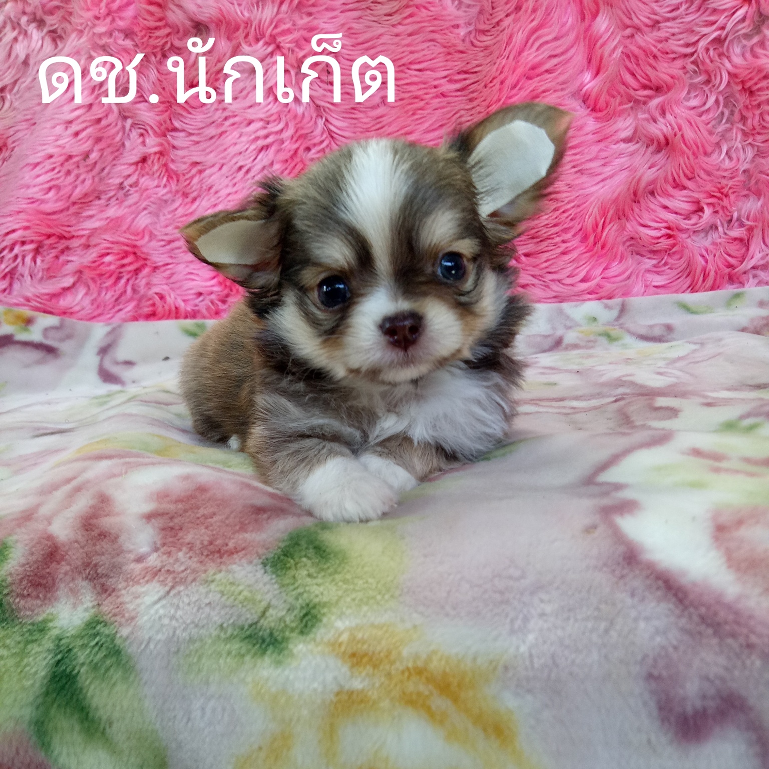 ดช.นักเก็ต ชิวาวาขนยาวขนหนาๆมีคิ้วใส่ถุงเท้า