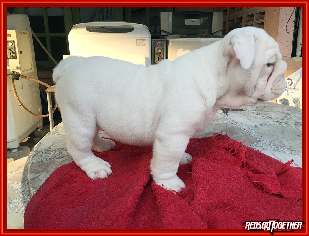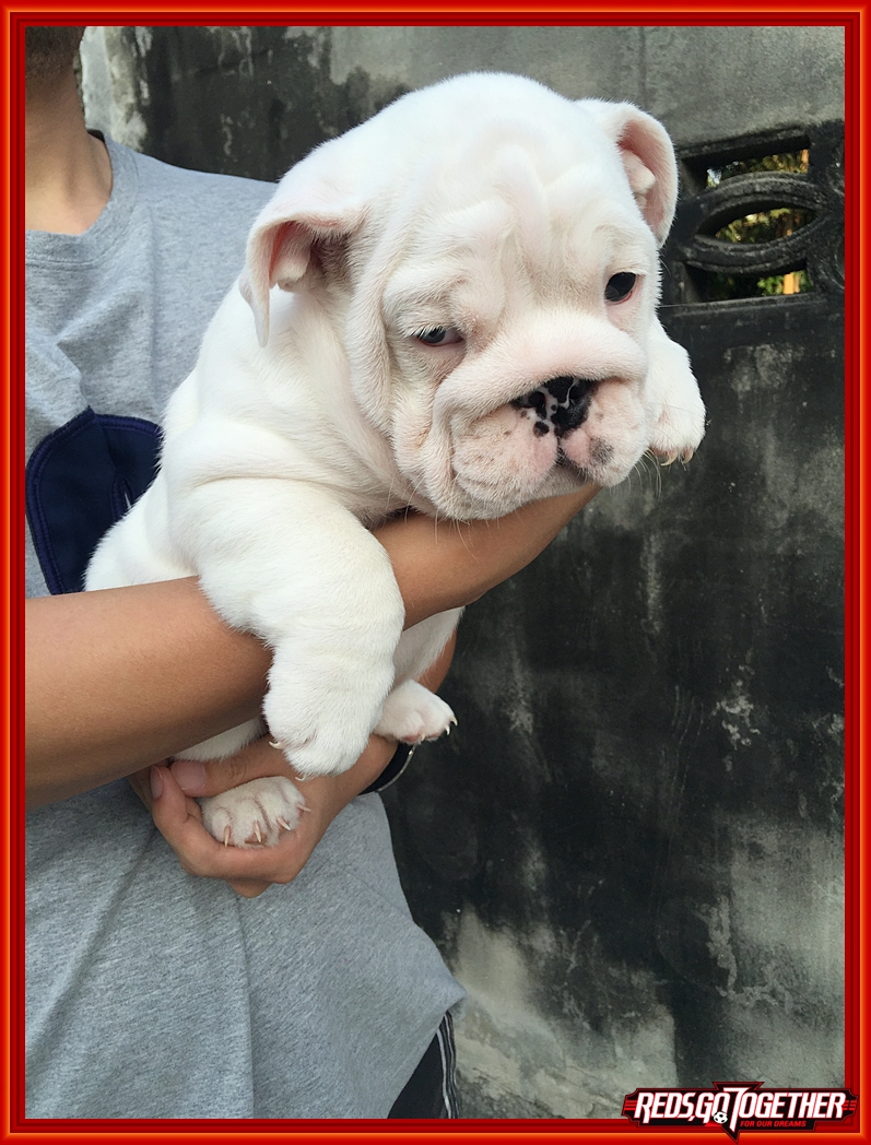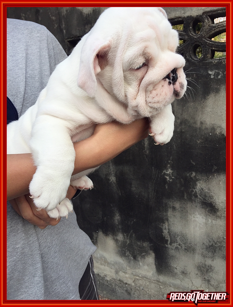 (ได้บ้านแล้ว) ลูกบลูด็อกขาวล้วน เพศผู้ ลูกไทยแชมป์มีใบเพดดีกรี