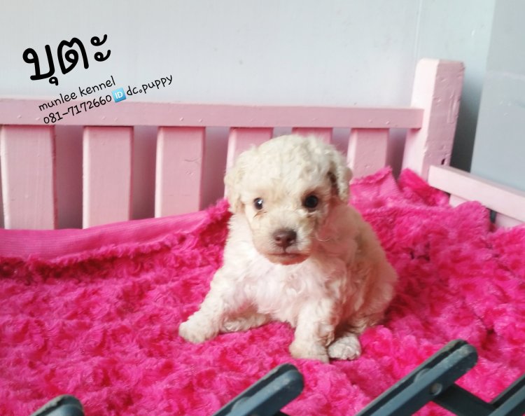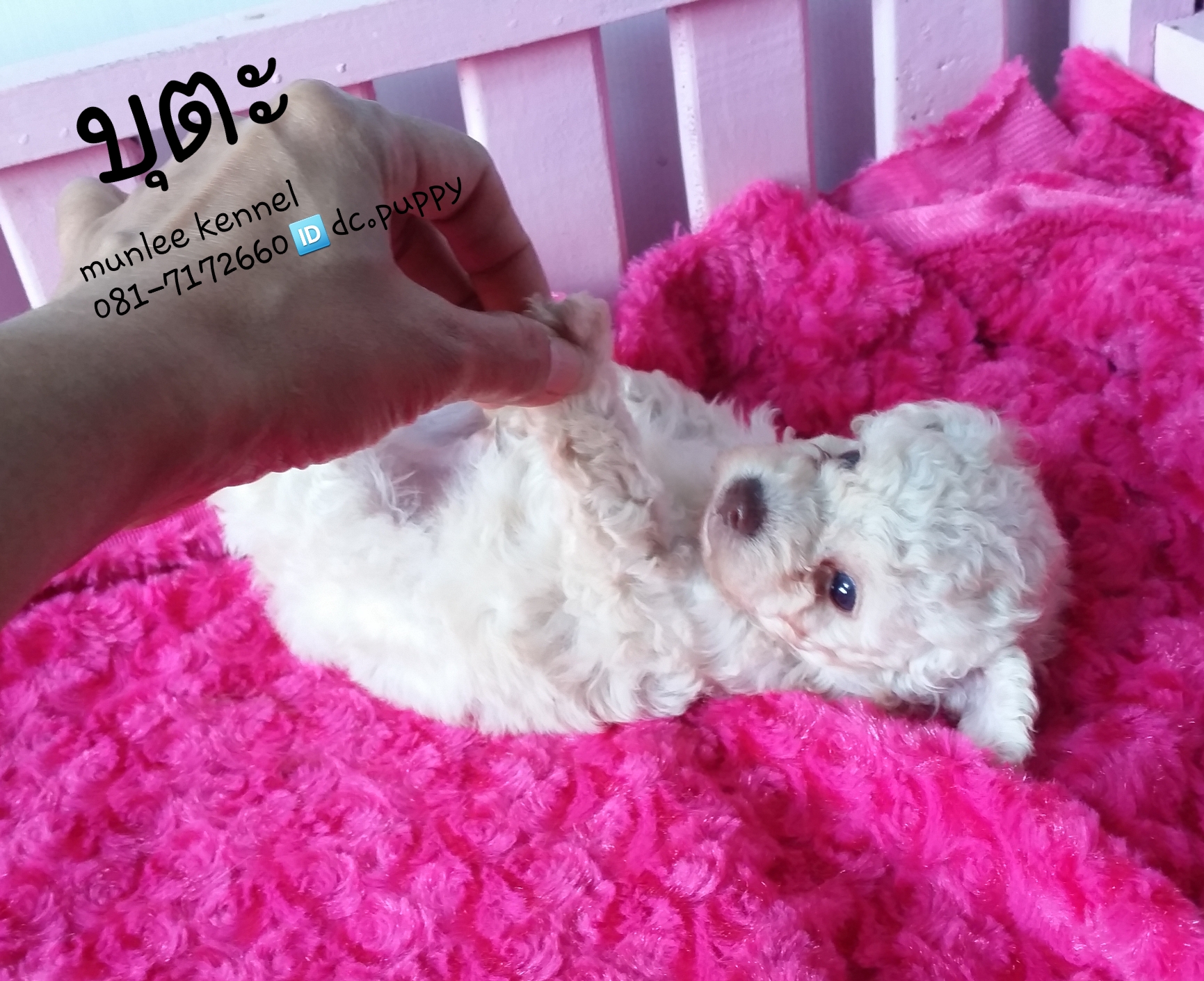 พุดเดิ้ล /เพศผู้/ สีขาว-ครีม ตัวเล็กๆน่ารัก ขนหยิกอายุ1เดือนกว่า รับได้หลังทำวัคซีน