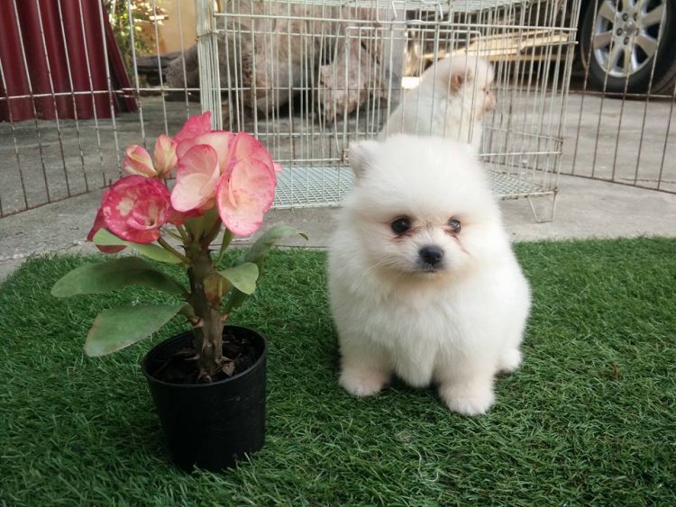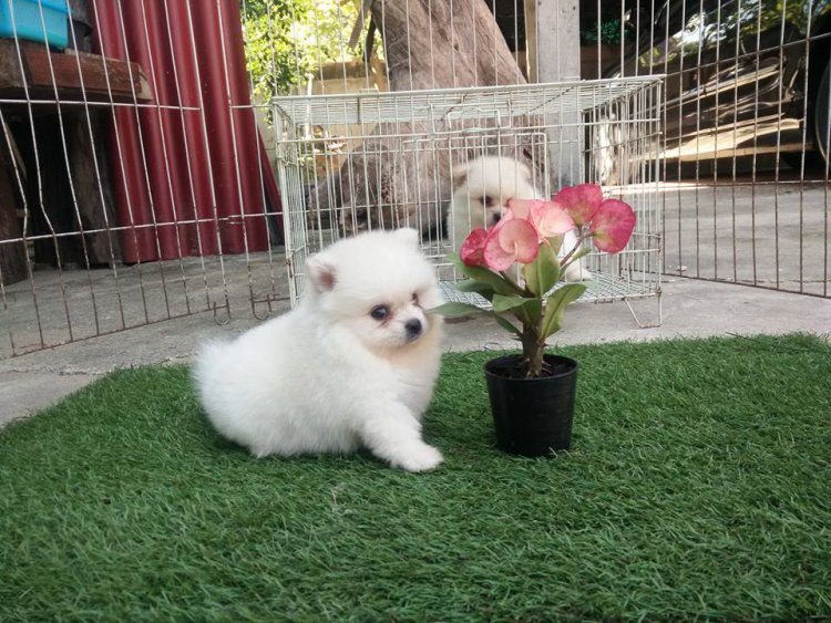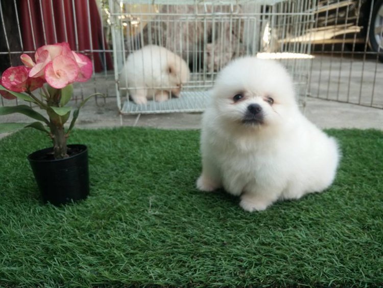ปอมเพศเมียน่ารักสีครีมขาวพร้อมย้ายบ้านเพียง 6500 พร้อมย้ายบ้านติดต่อได้ค๊า