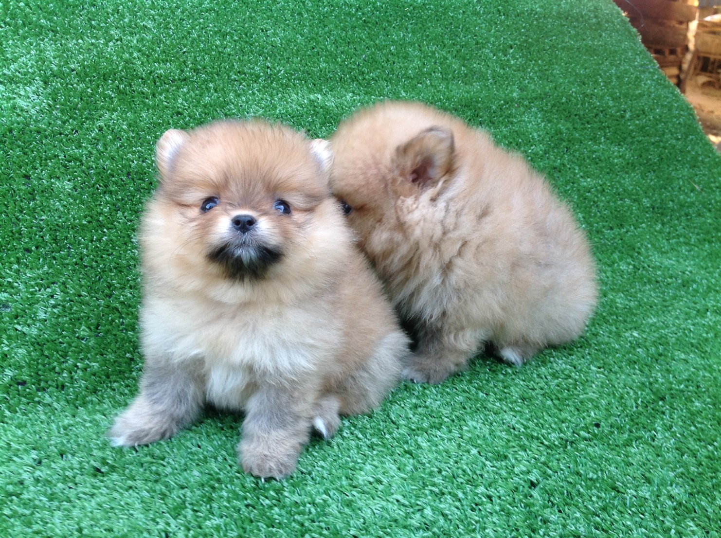 ลูกสุนัขปอมเมอเรเนียนแท้ สีช็อก ตัวผู้กับตัวเมีย