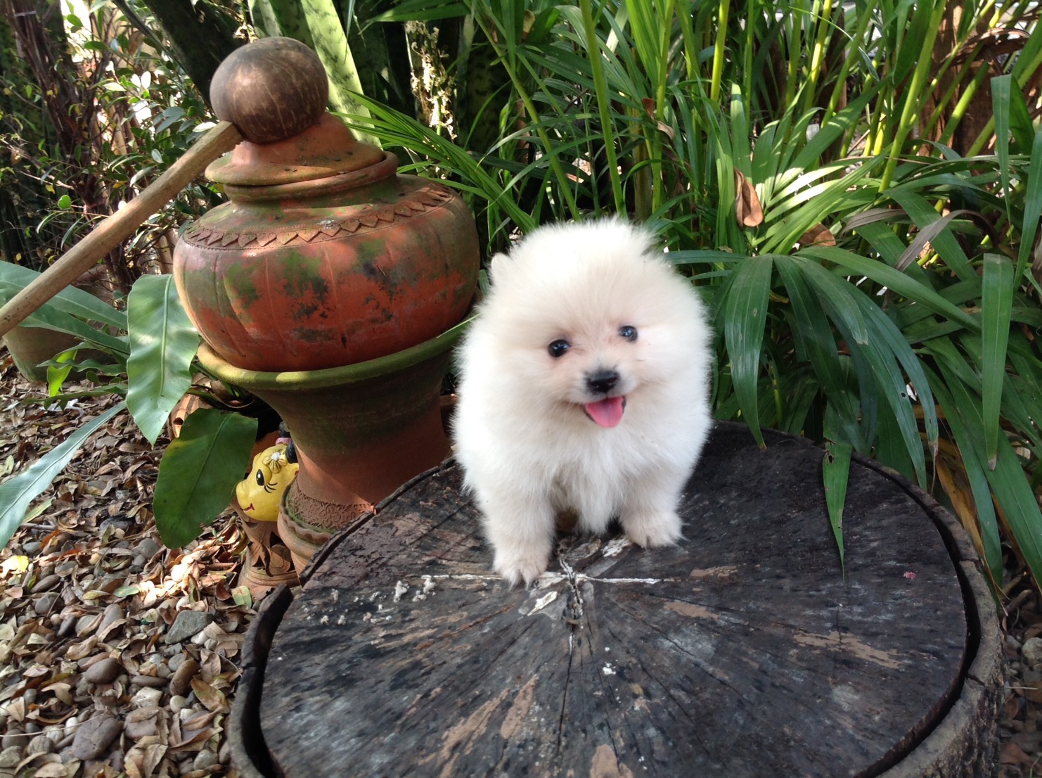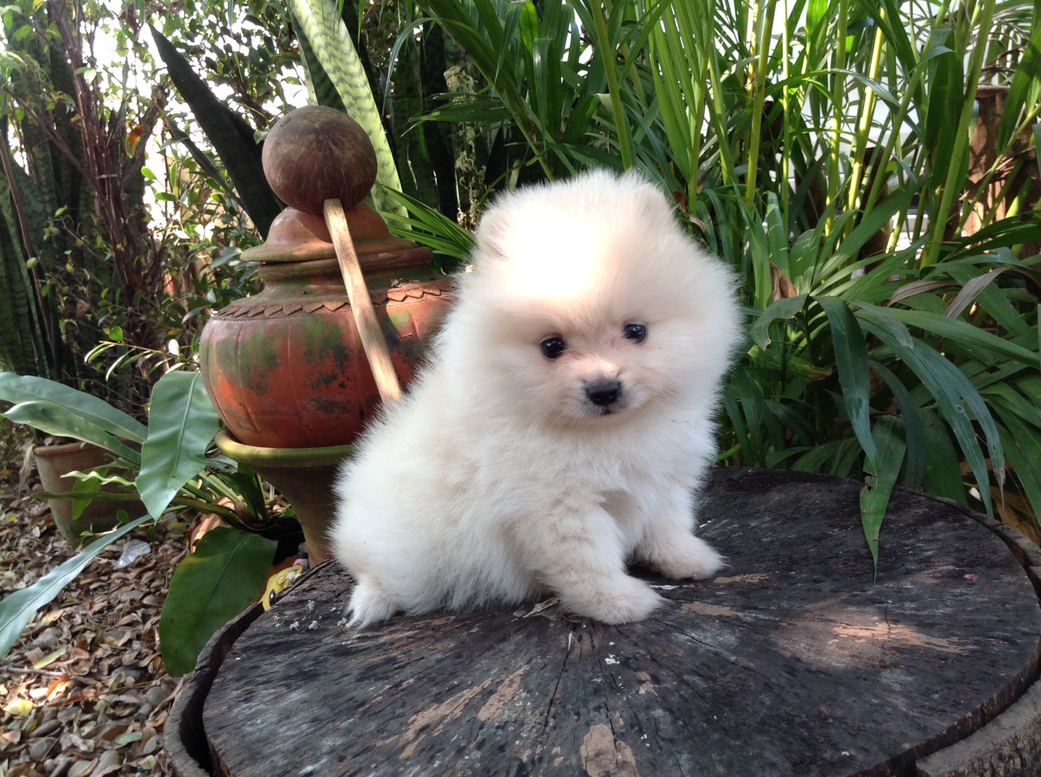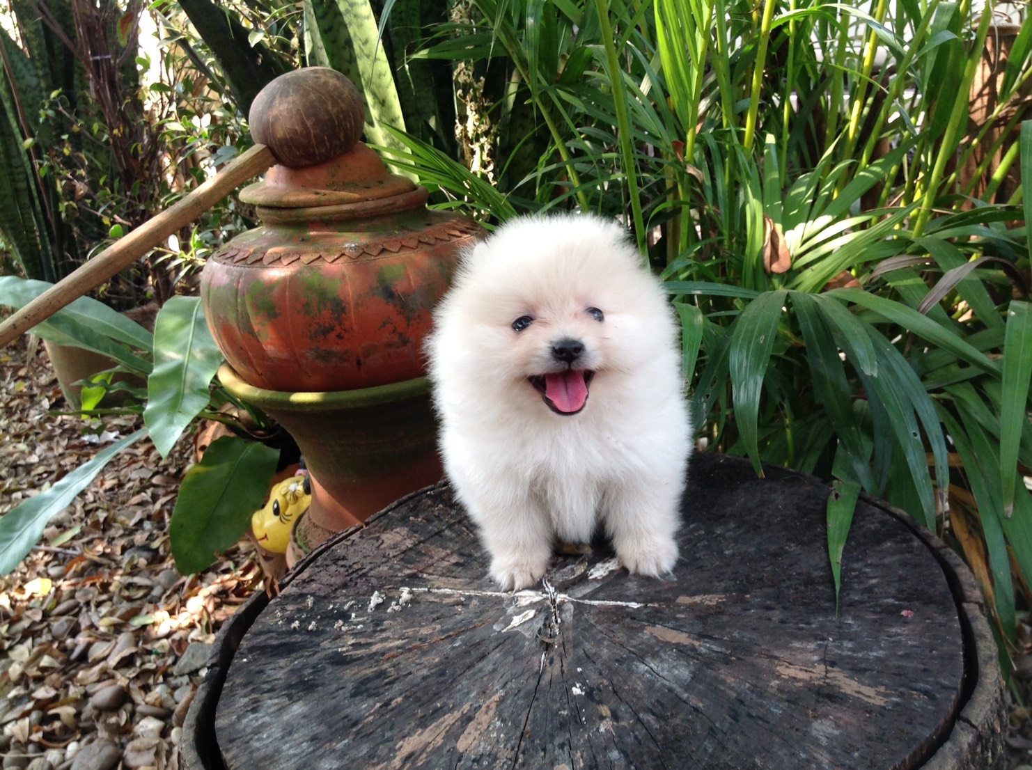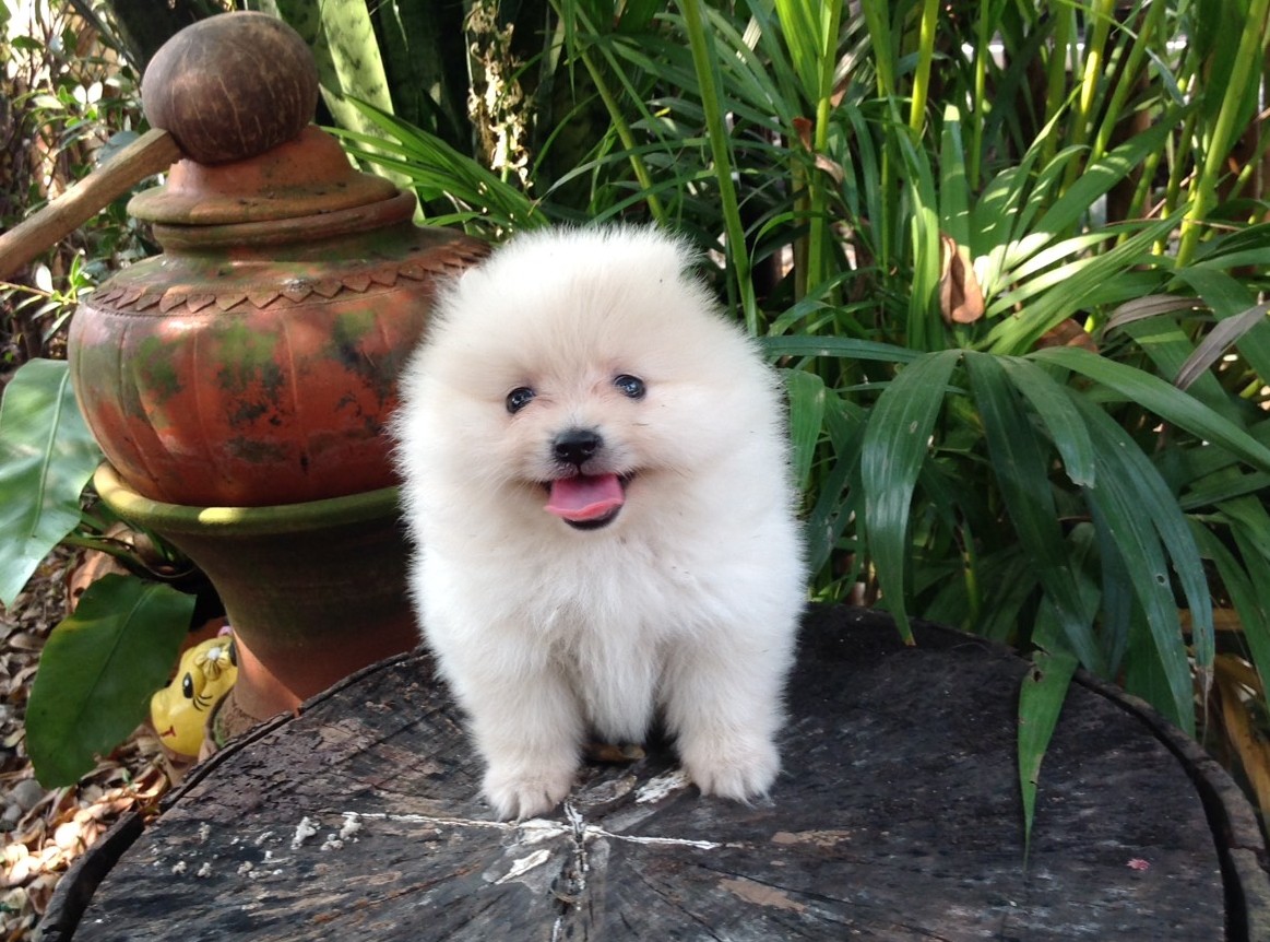 ลูกสุนัขปอมเมอเรเนียนแท้ สีขาวครีม เพศผู้อ้วน หน้าหมี ขนแน่น