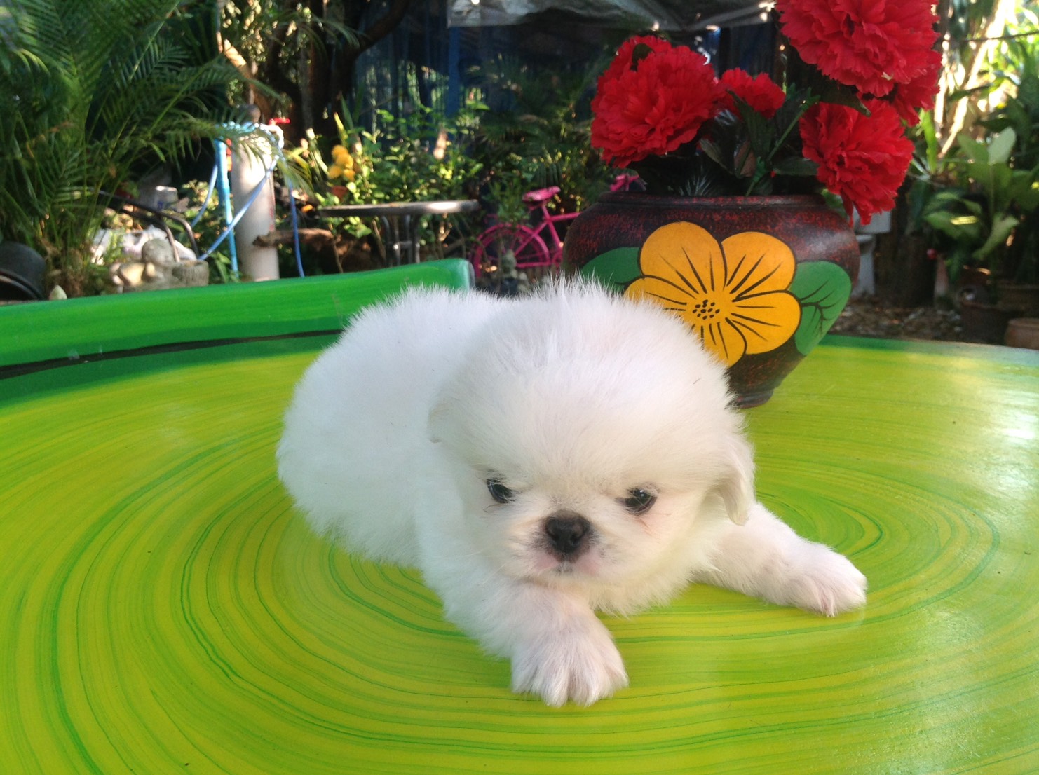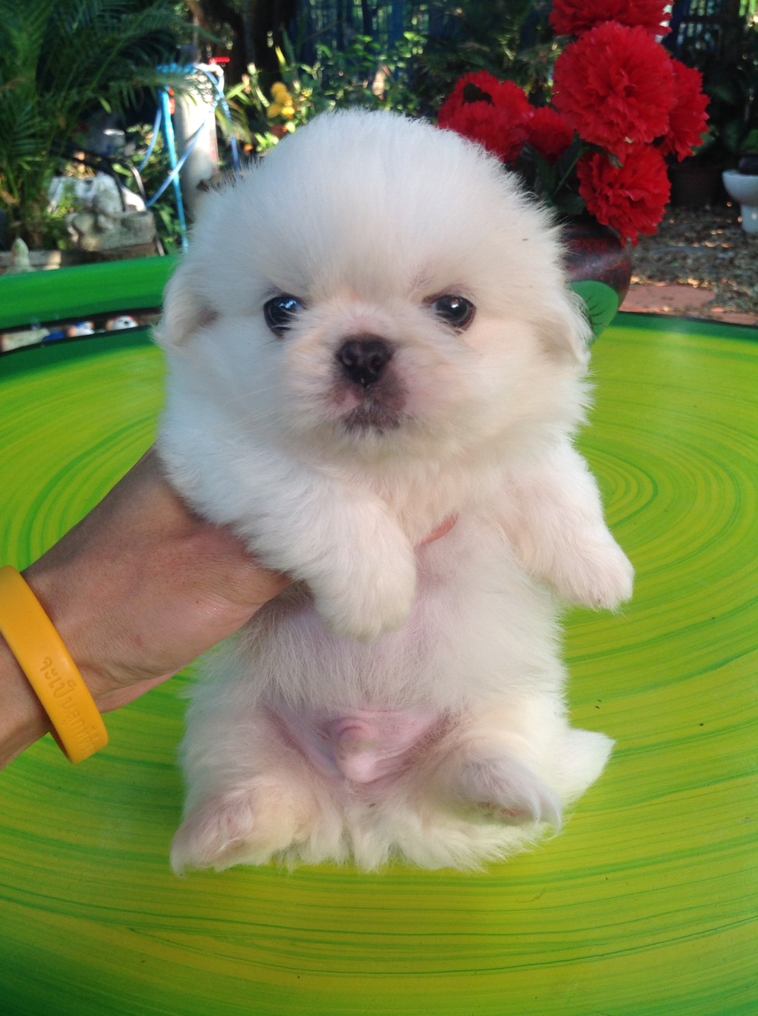 ลูกสุนัขปักกิ่ง สีขาวสำลี น่ารัก ขี้เล่น อ้วน ขนแน่น