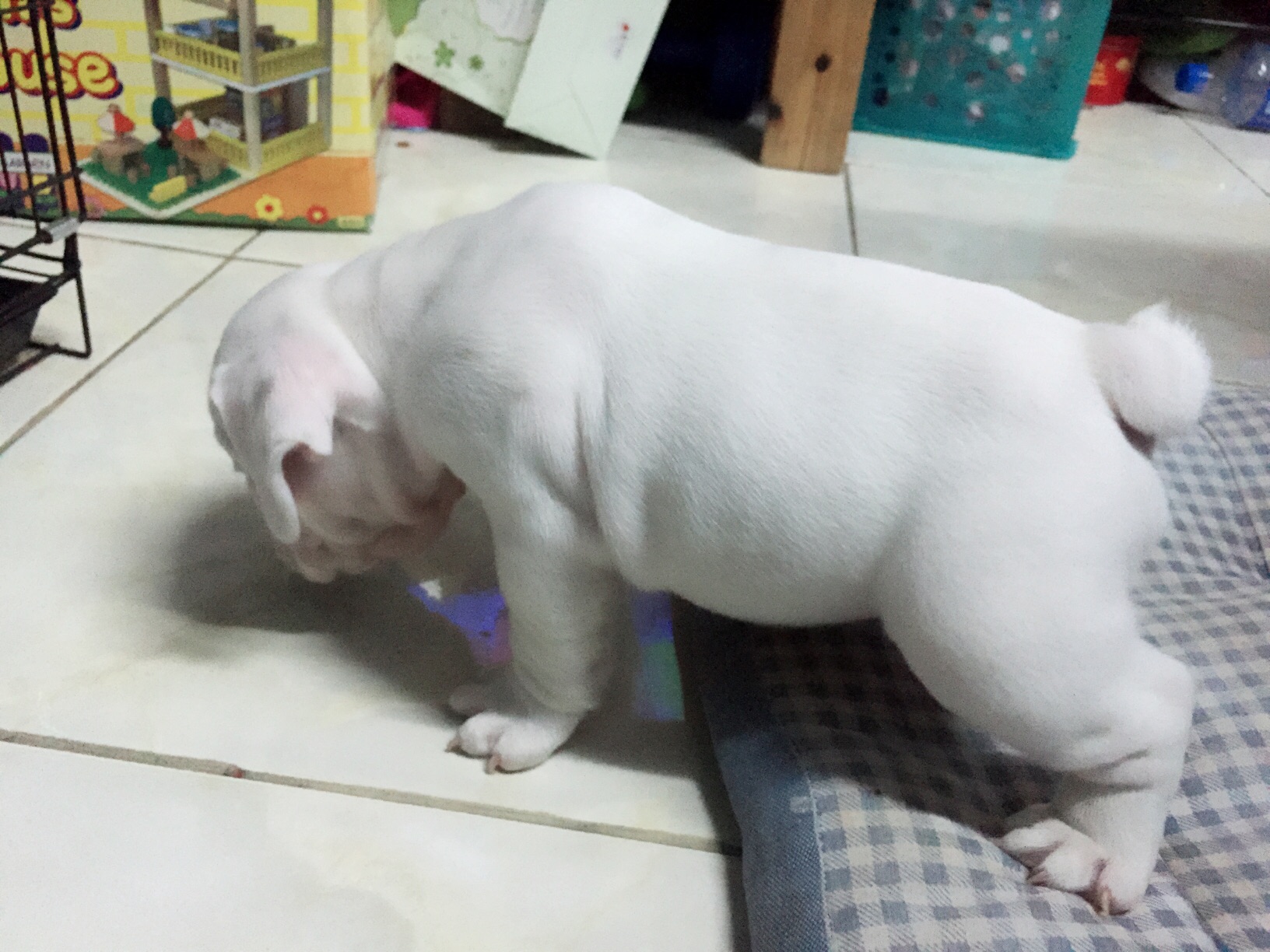 น้องบลูด็อกสีขาว ผู้ 1 เมีย 1 พร้อมย้ายบ้านค่ะ ตอนนี้น้องอายุ 49 วัน ฉีดวัคซีนเข็มแรกแล้ว น้องมีใบเพทสมาคมเต็มใบค่ะ สนใจสอบถามเพิ่มเติมได้นะค่ะ ☎️ 085-0560611 ยุ้ยค่ะ ID line 0850560611