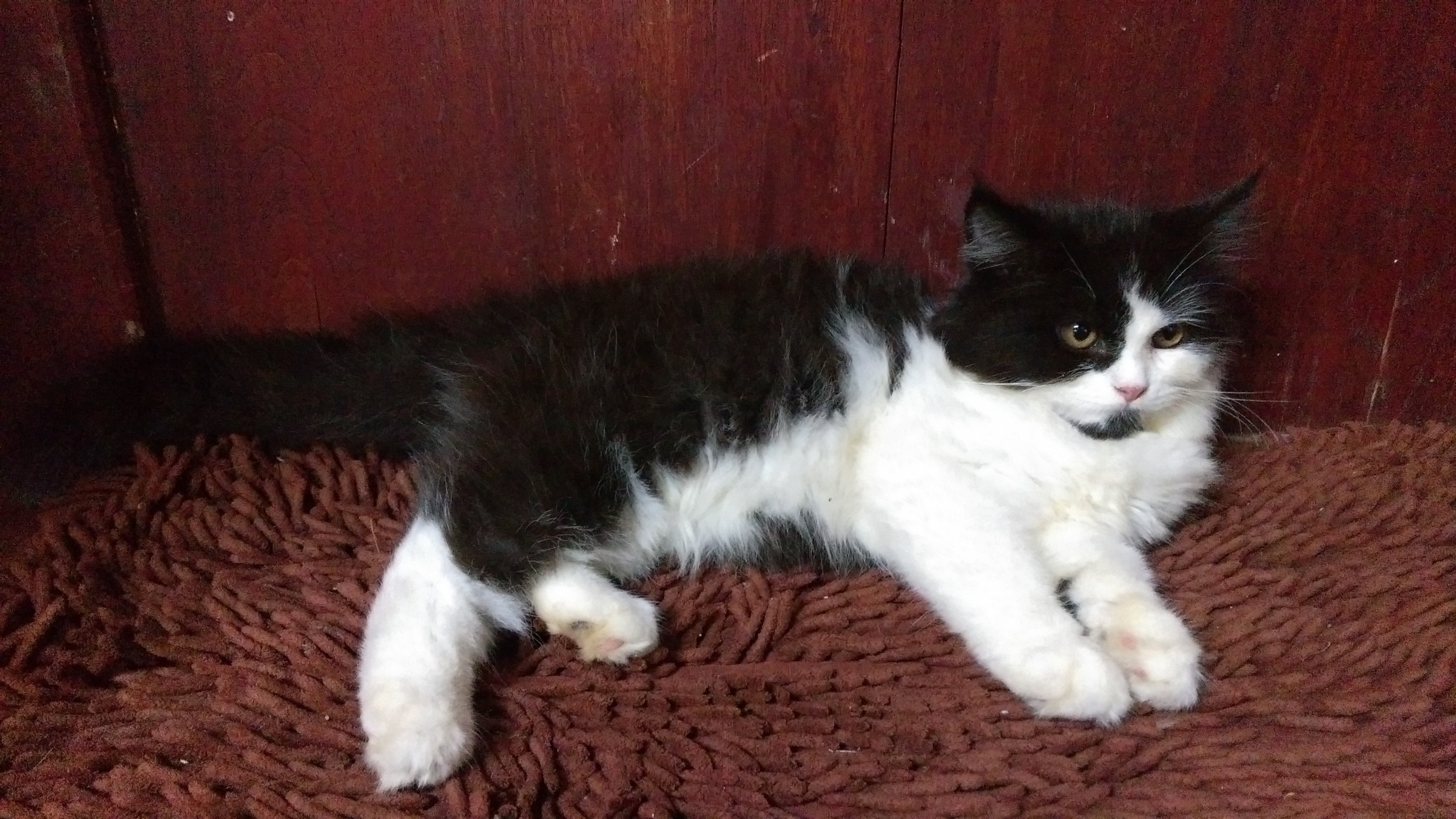 สีดำขาว มีเคราใต้คาง ตอนนี้น้องพร้อมย้ายบ้านแล้วค่ะ