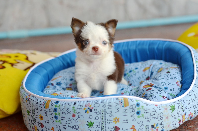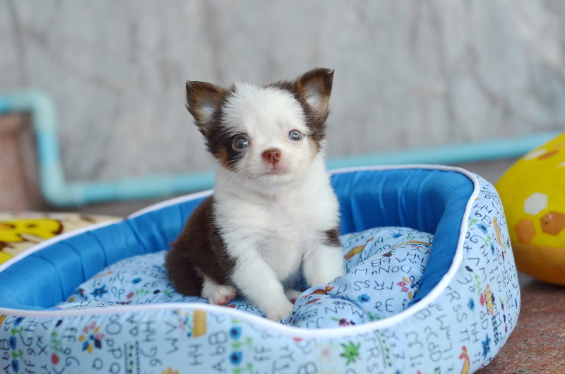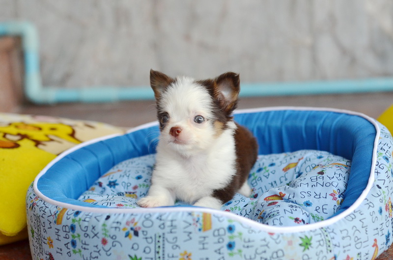ชิวาวา เพศเมีย ขนยาว สีขาวชอคโกแลต ราคา 12500 บาท