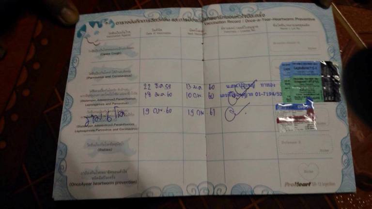 วัคซีน รวม ครบ 3 ครั้ง และ พิษสุนัขบ้าเข็มแรกแล้ว