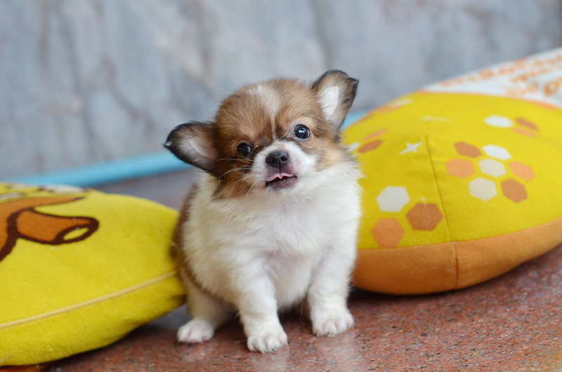 ชิวาวาเพศเมีย ขนยาว สีขาวน้ำตาล 6900