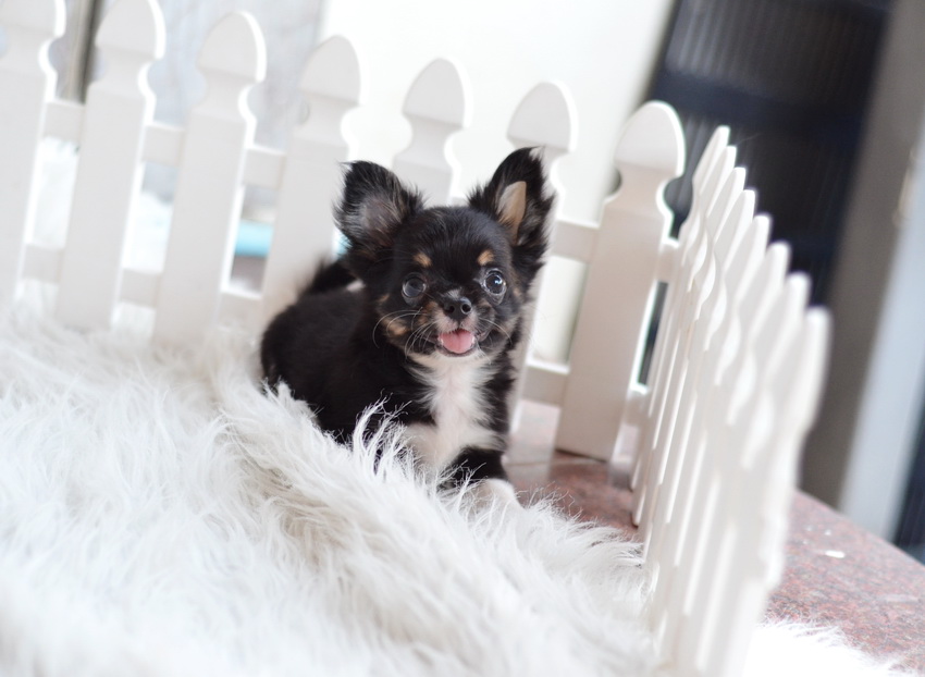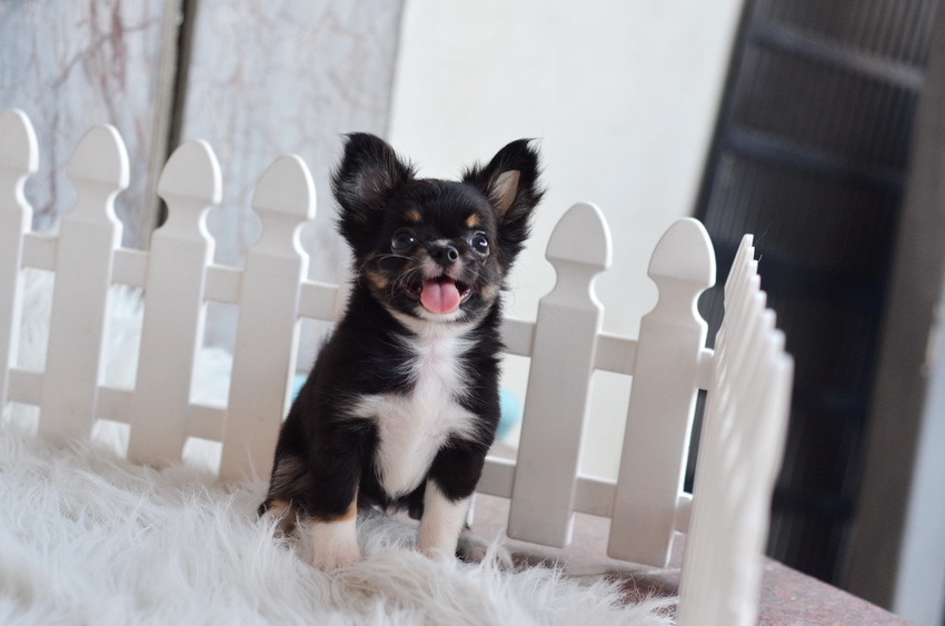 ชิวาวา เพศเมีย ขนยาว สีแบลคแทนไวท์มาร์ก ราคา 9500 บาท