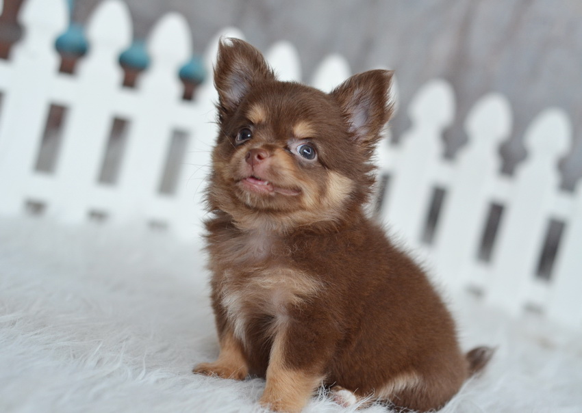 ชิวาวา เพศเมีย ขนยาว สีชอคโกแลตแทน ราคา 9500 บาท