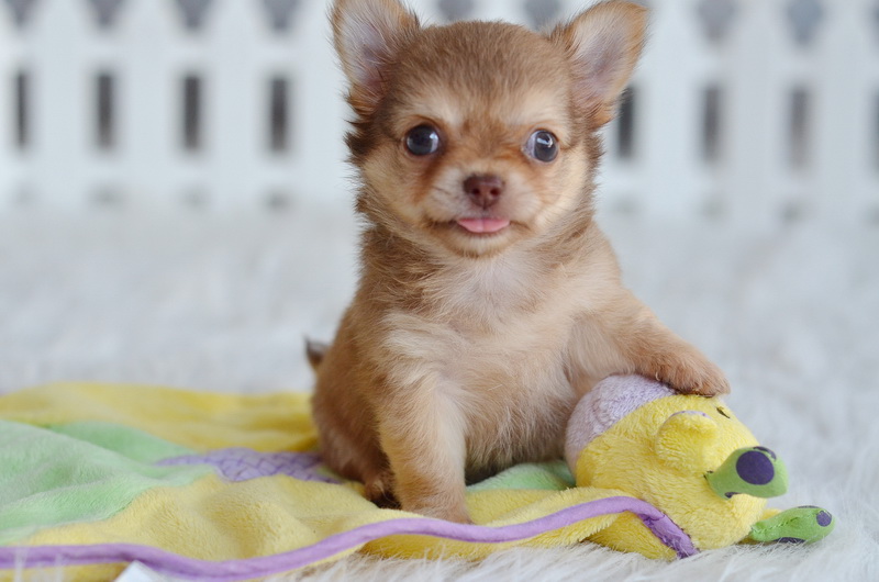 ชิวาวาเพศผู้ ขนยาว สีน้ำตาล ไซด์เล็ก ราคา 7500 บาท