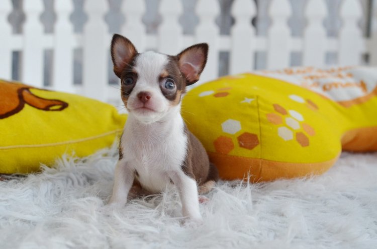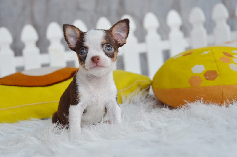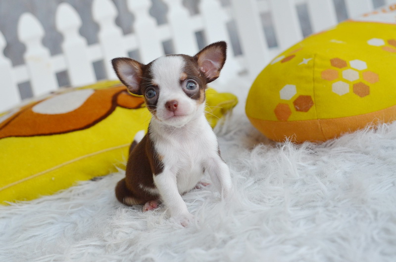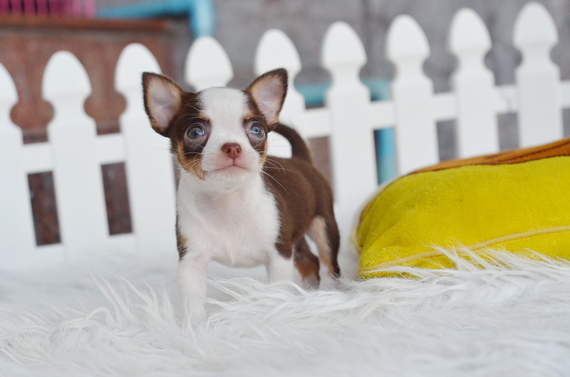 ชิวาวา เพศผู้ ขนสั้น สีขาวชอคโกแลต ราคา 7500 บาท