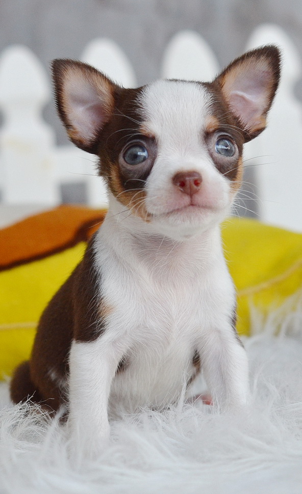 ★^-^*★ WWW.WOWWCHIHUAHUA.COM★^-^*★." "น้องกาก้า"ชิวาวาเพศผู้ขนสั้น สีขาวชอคโกแลต 7500