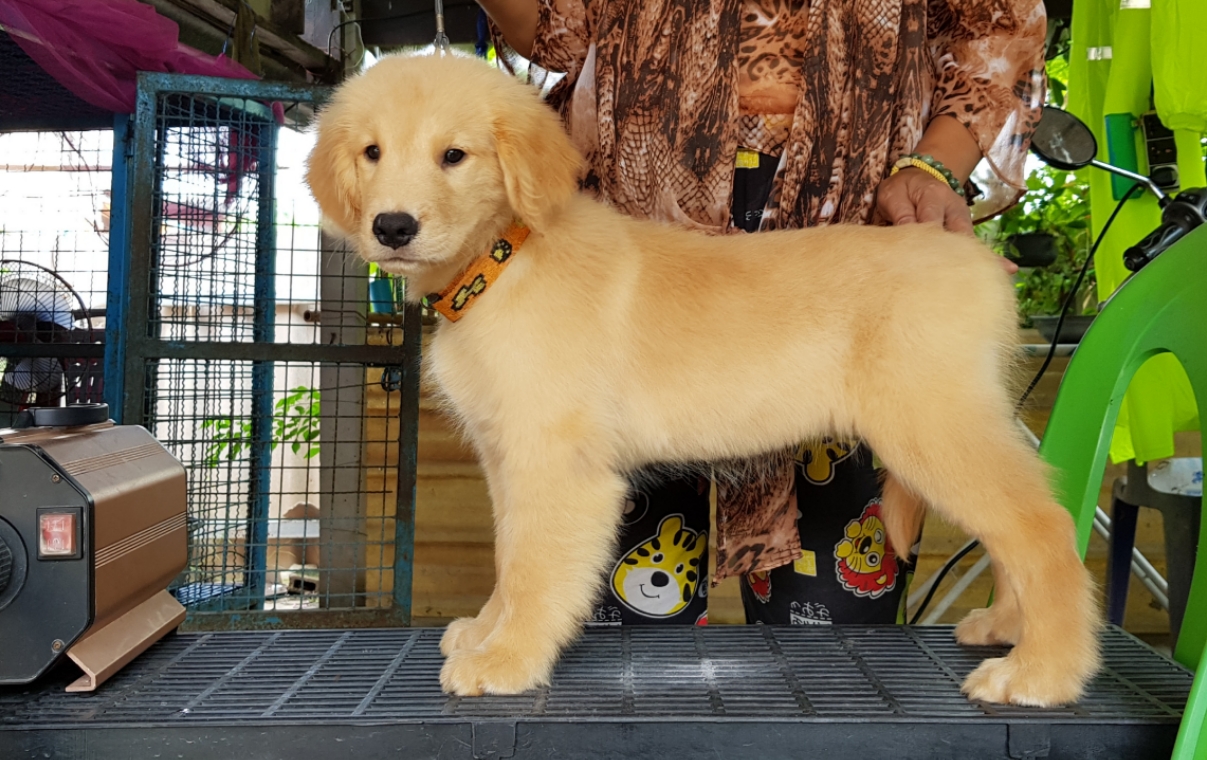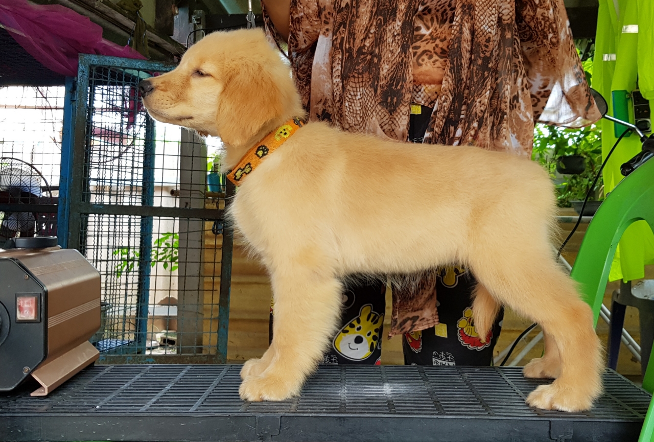 ลูกสุนัขโกลเด้นเพศเมียสายเลือดไทยแชมป์ ใบเพ็ดเต็มใบ มีบริการจัดส่ง