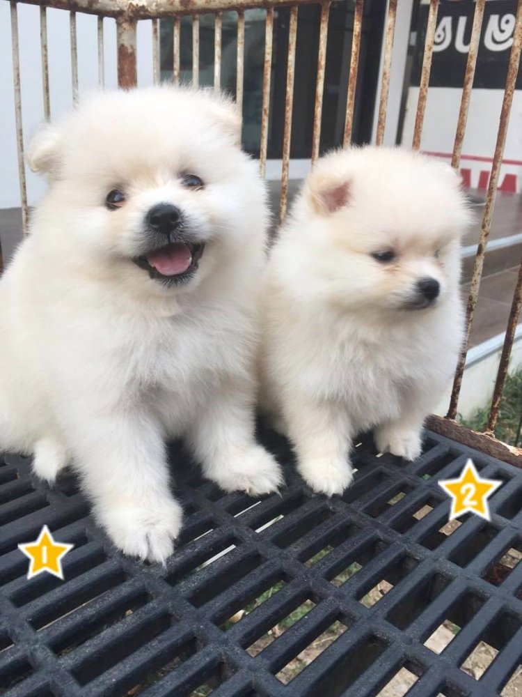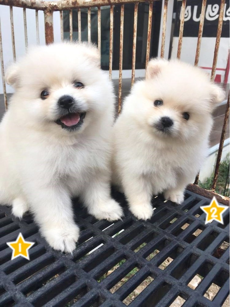 ปอมสีขาวเพศเมียไซส์เล็ก 2 ตัว ราคาตัวละ 6300 บาท สนใจติดต่อ 0867309364 Line : chanok282