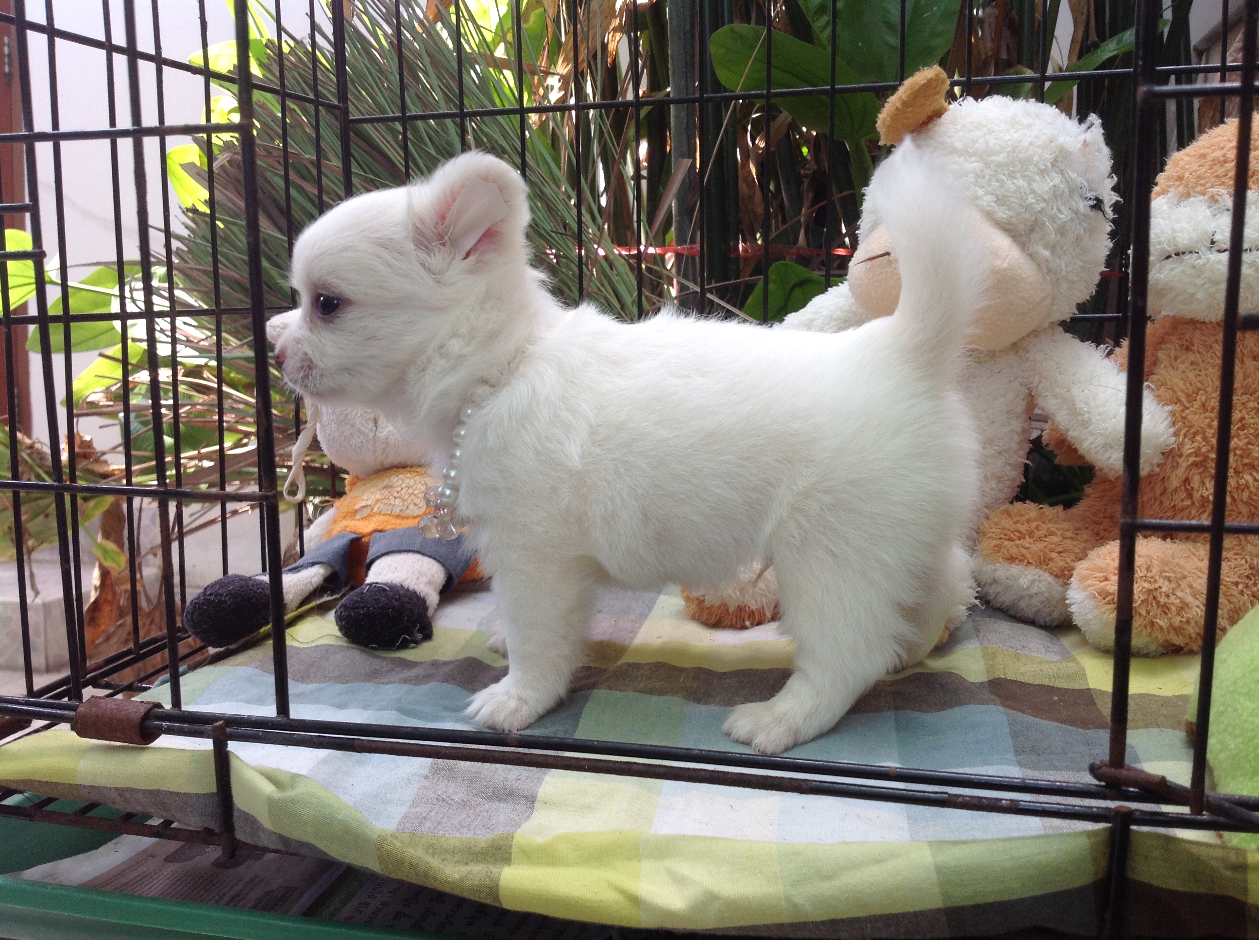 ชิวาวาขนยาว เพศผู้ สีขาวล้วนน่ารักราคาเบาๆ