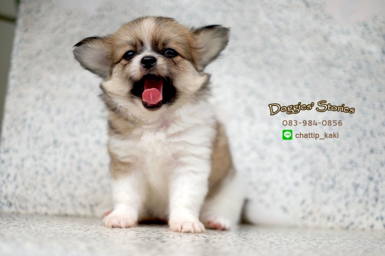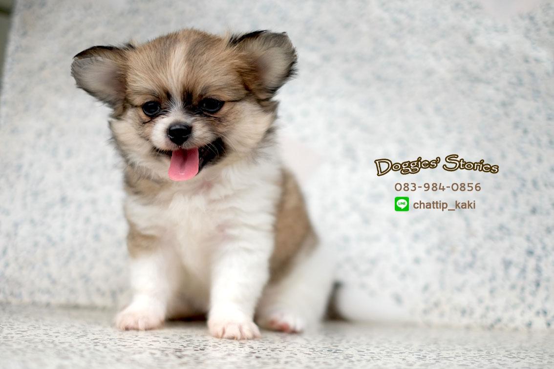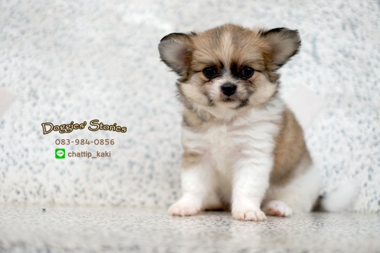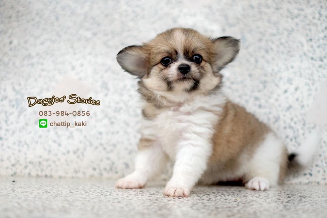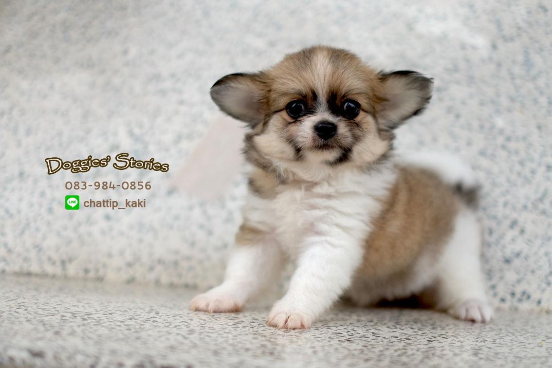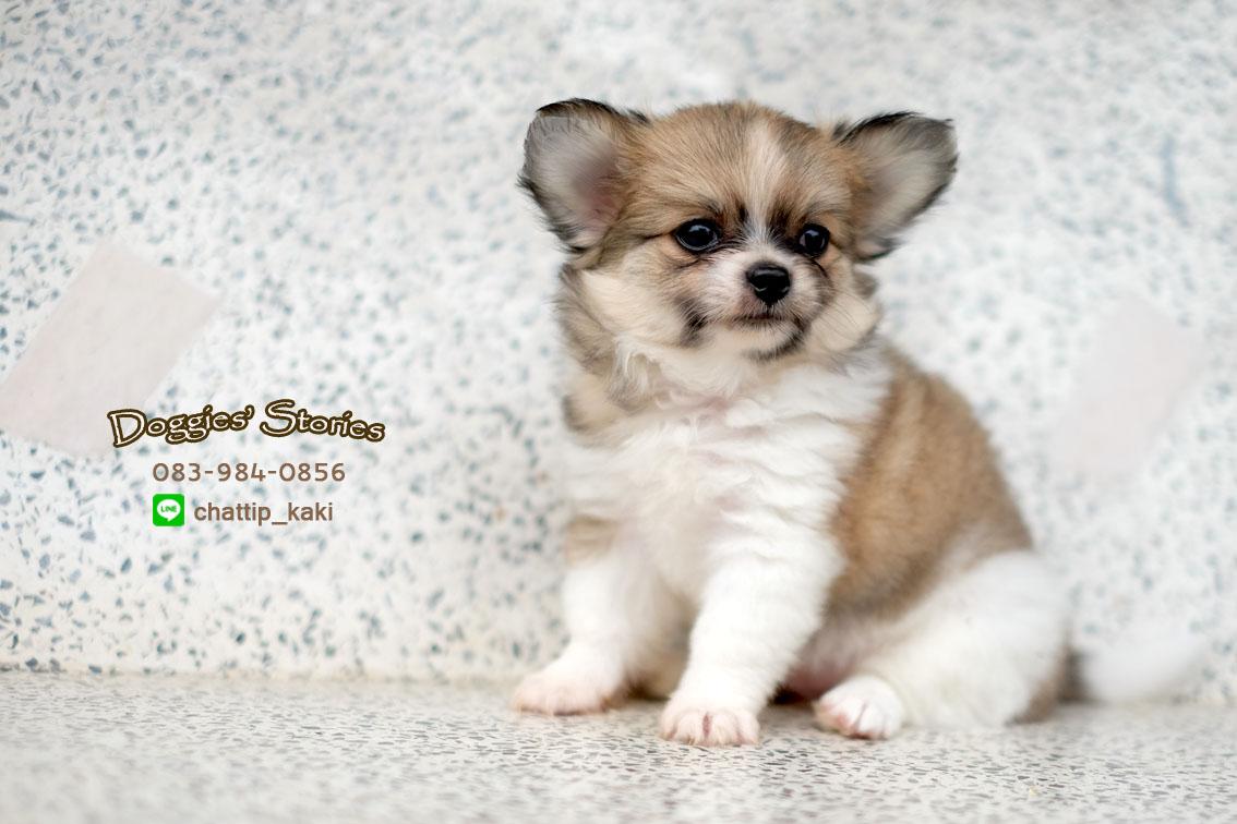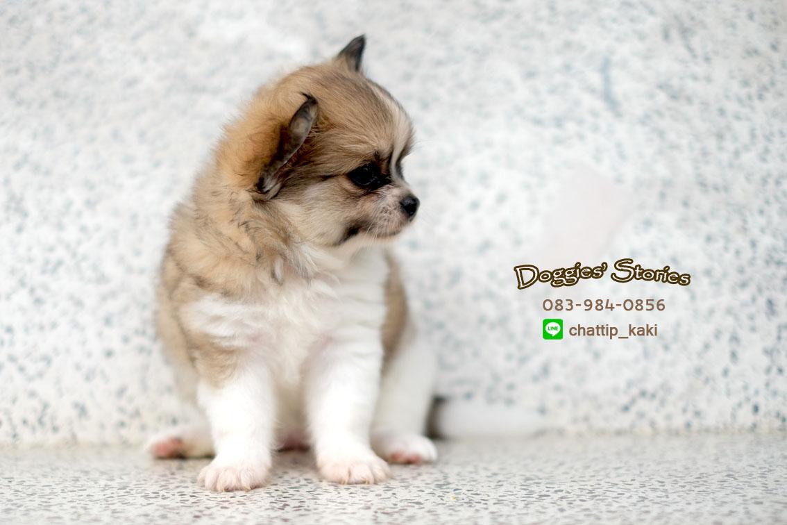 ลูกชิวาวาขนยาว เพศเมีย น้องจำปี ขนแน่นตึ้บ สีแฟนซีน้ำตาล-ขาว