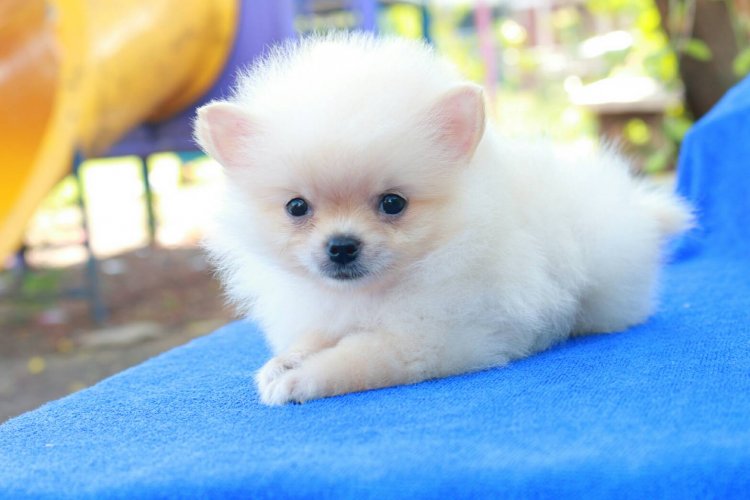 เริ่ดหรู ขาวเว่อร์ ขายลูกปอม90% เพศผู้ ตัวเล็ก สีขาว ขนฟูแน่น พร้อมประกันสุขภาพ