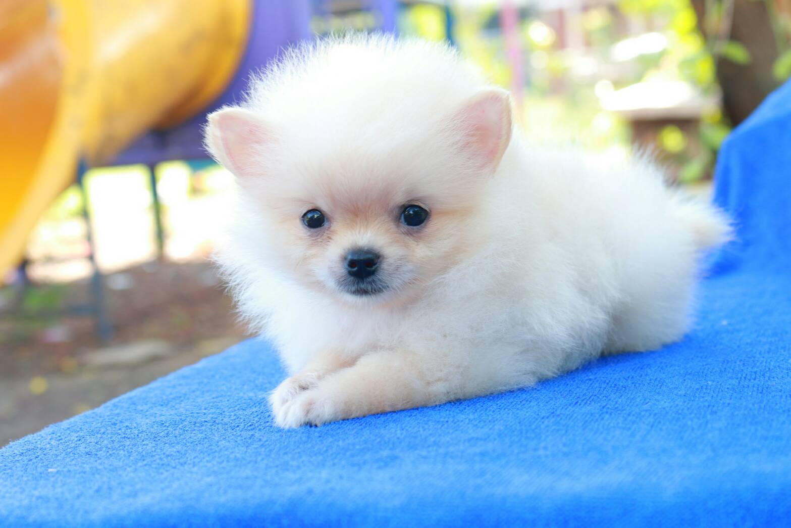 ขายลูกปอม90% เพศผู้ ตัวเล็ก สีขาว ขนฟูแน่น พร้อมประกันสุขภาพ