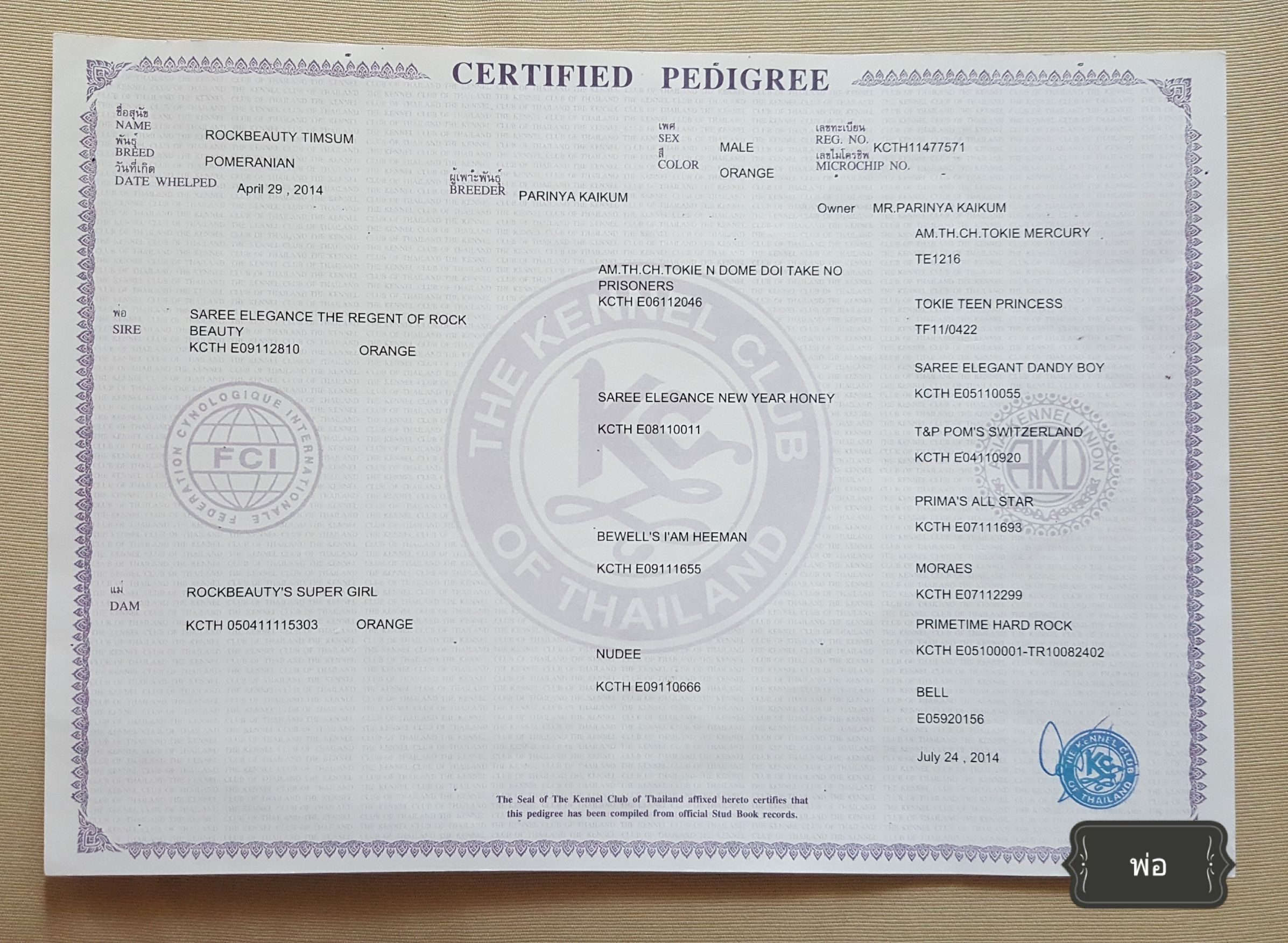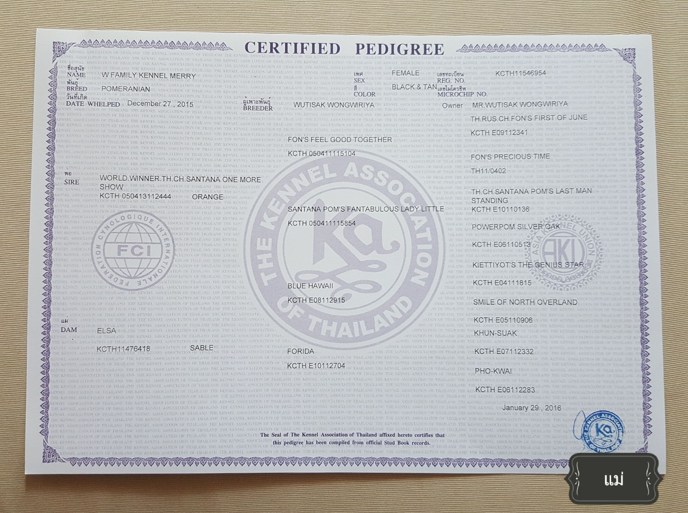 ชื่อสมาชิก (Name): W Family Kennel (WFK)