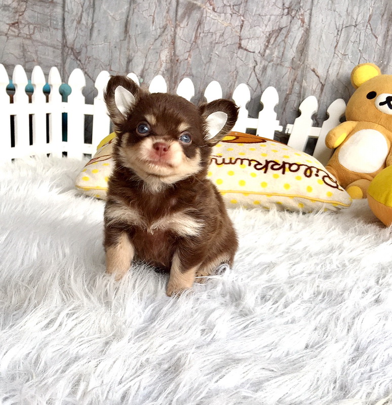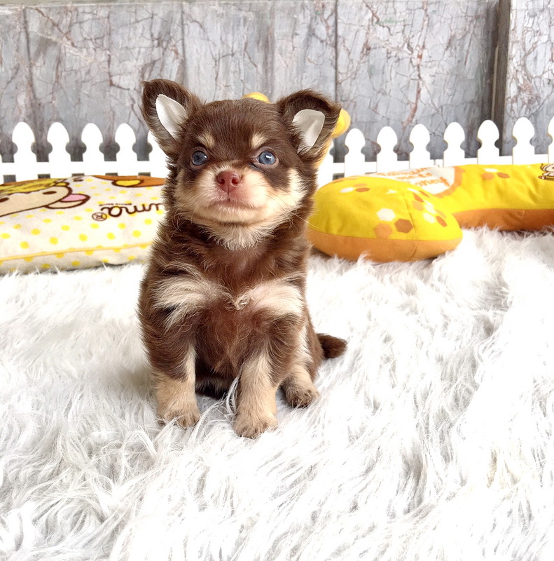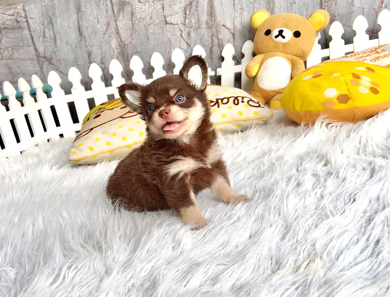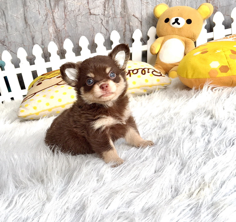 ชิวาวาเพศเมีย ขนยาว สีชอคโกแลตแทน ราคา 13500 บาท
