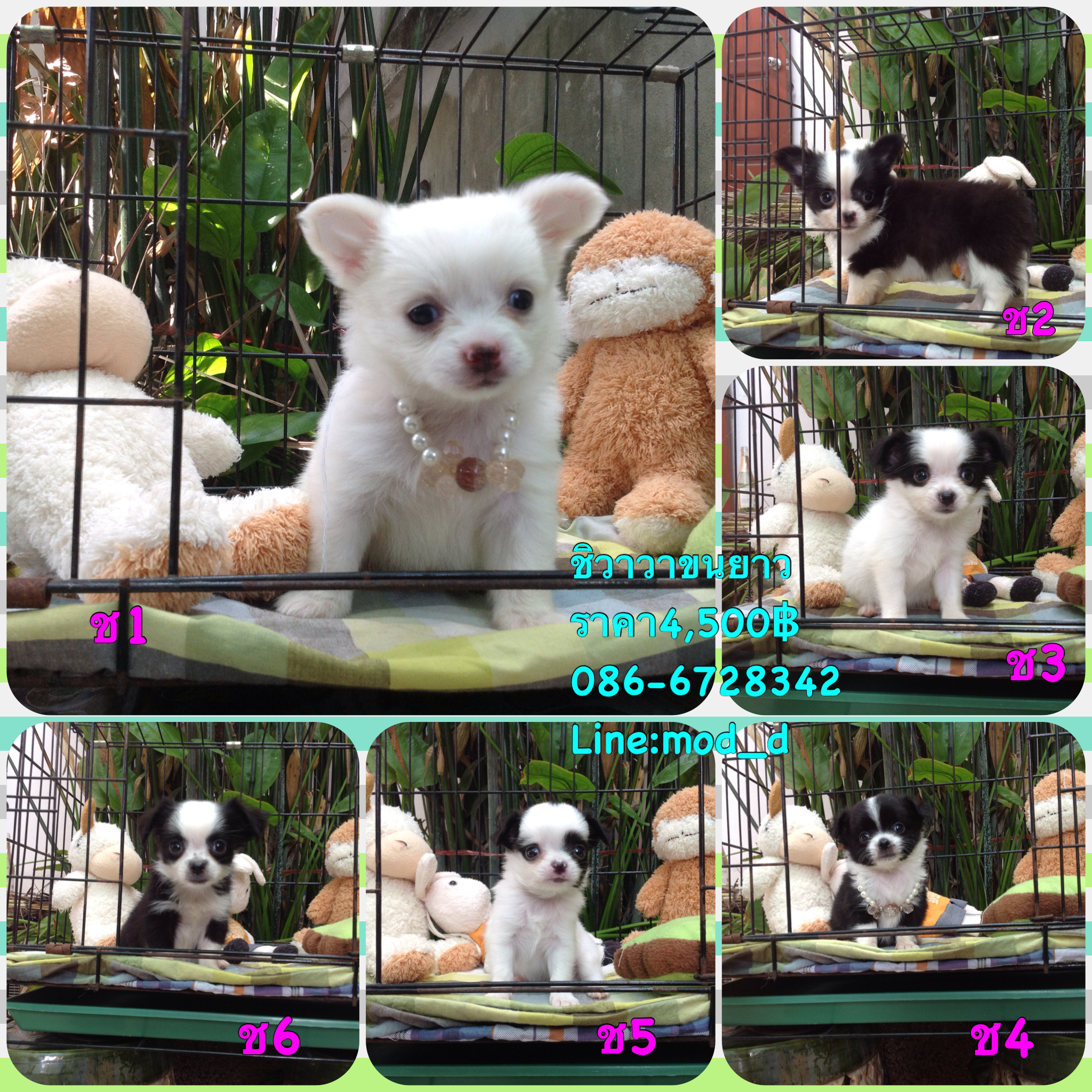 ชิวาวาขนยาว มีทั้งเพศผู้และเพศเมีย สีขาวดำมีคิ้ว สีแบล็คแทน สีขาวล้วน น่ารัก อ้วนกลม กินอาหารได้พร้อมย้ายบ้าน ราคาถูกสุดๆจาก6,000฿เหลือ4,500฿สนใจตัวไหนสอบถามได้ค่ะ โทร086-6728342มดค่ะ หรือทักไลน์ mod_d ขอดูรูปเพิ่มเติมได้เลยค่ะ น้องหมาอยู่ กทม.สุวินทวงศ์28 มีนบุรี มีบริการส่งตามตกลงกันค่ะ