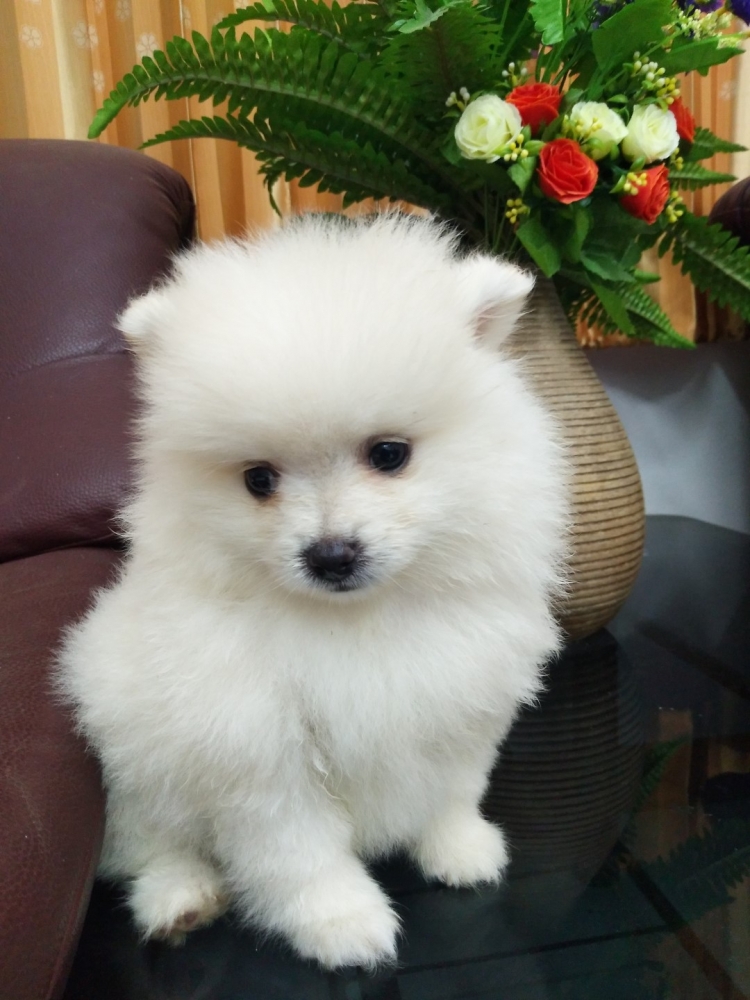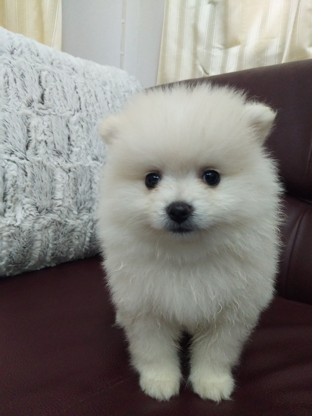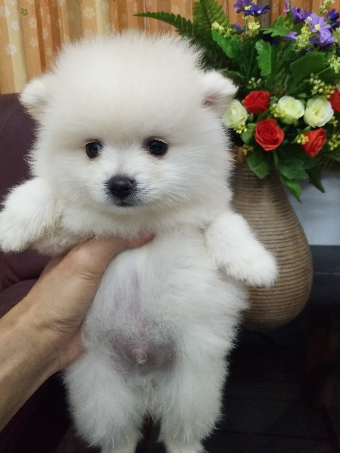 ปอมเมอเรเนียนแท้ เพศผู้ สีขาวสำลี อ้วนขนแน่่นน่ารักมาก