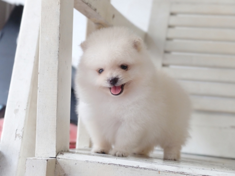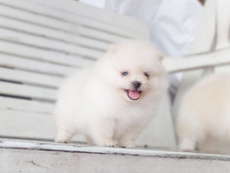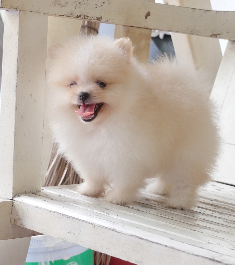 ปอมแท้สีขาวครีม 100% อายุ เกือบ2เดือน สุขภาพแข็งแรง เรารับประกันสุขภาพ รับรองไม่ผิดหวัง