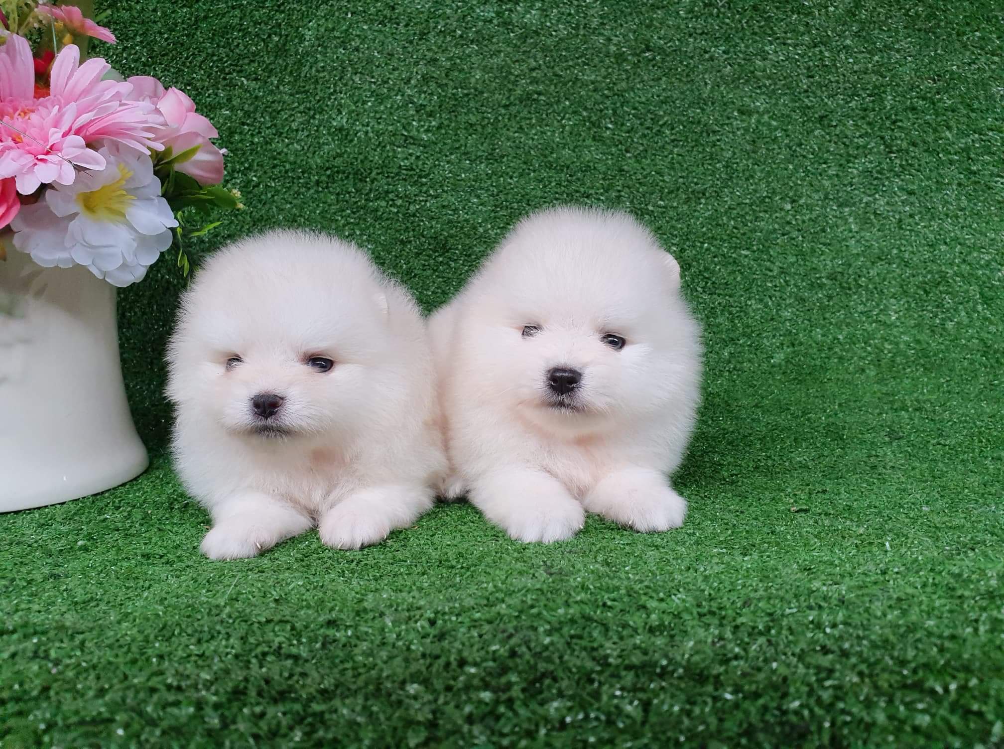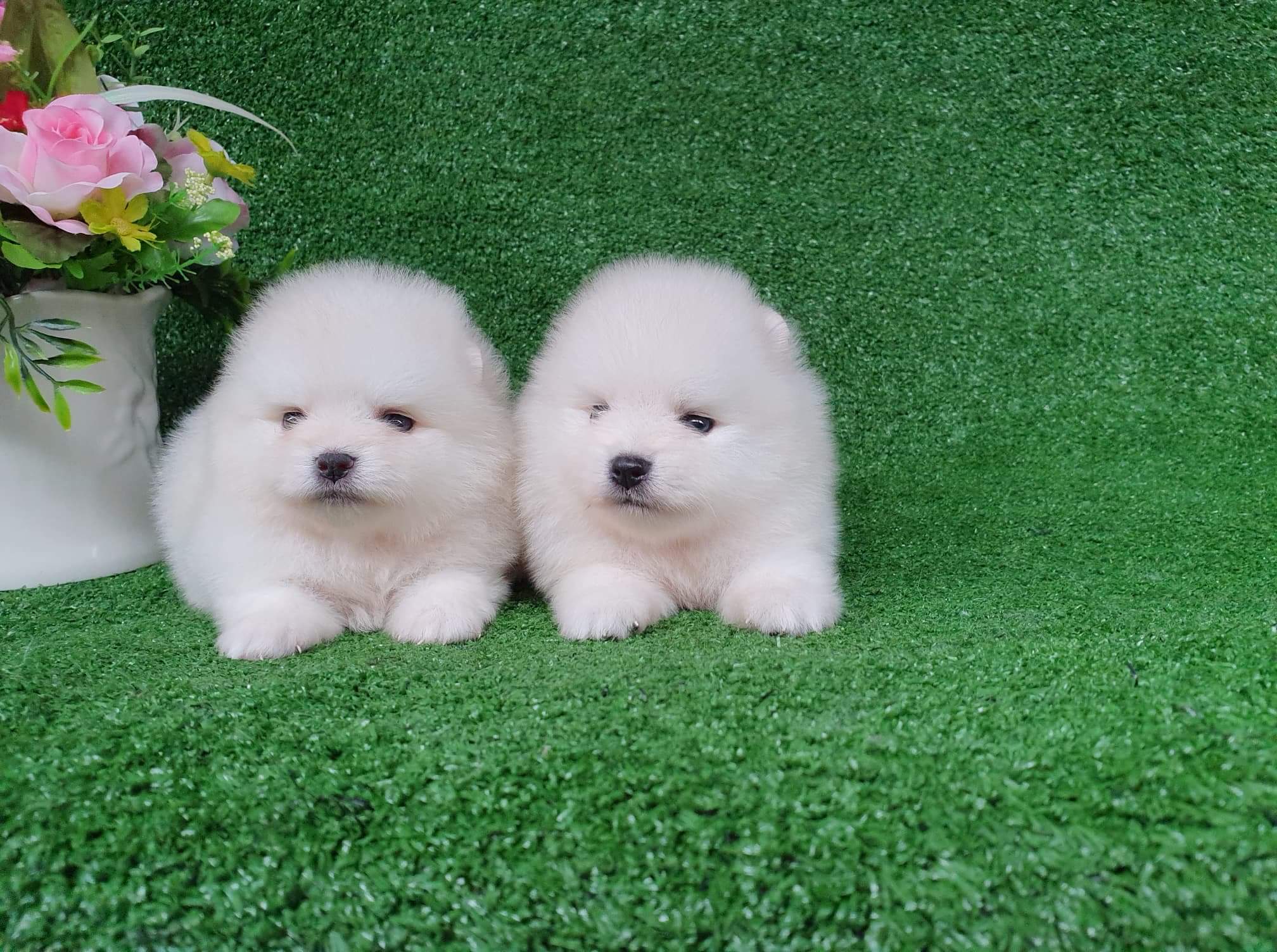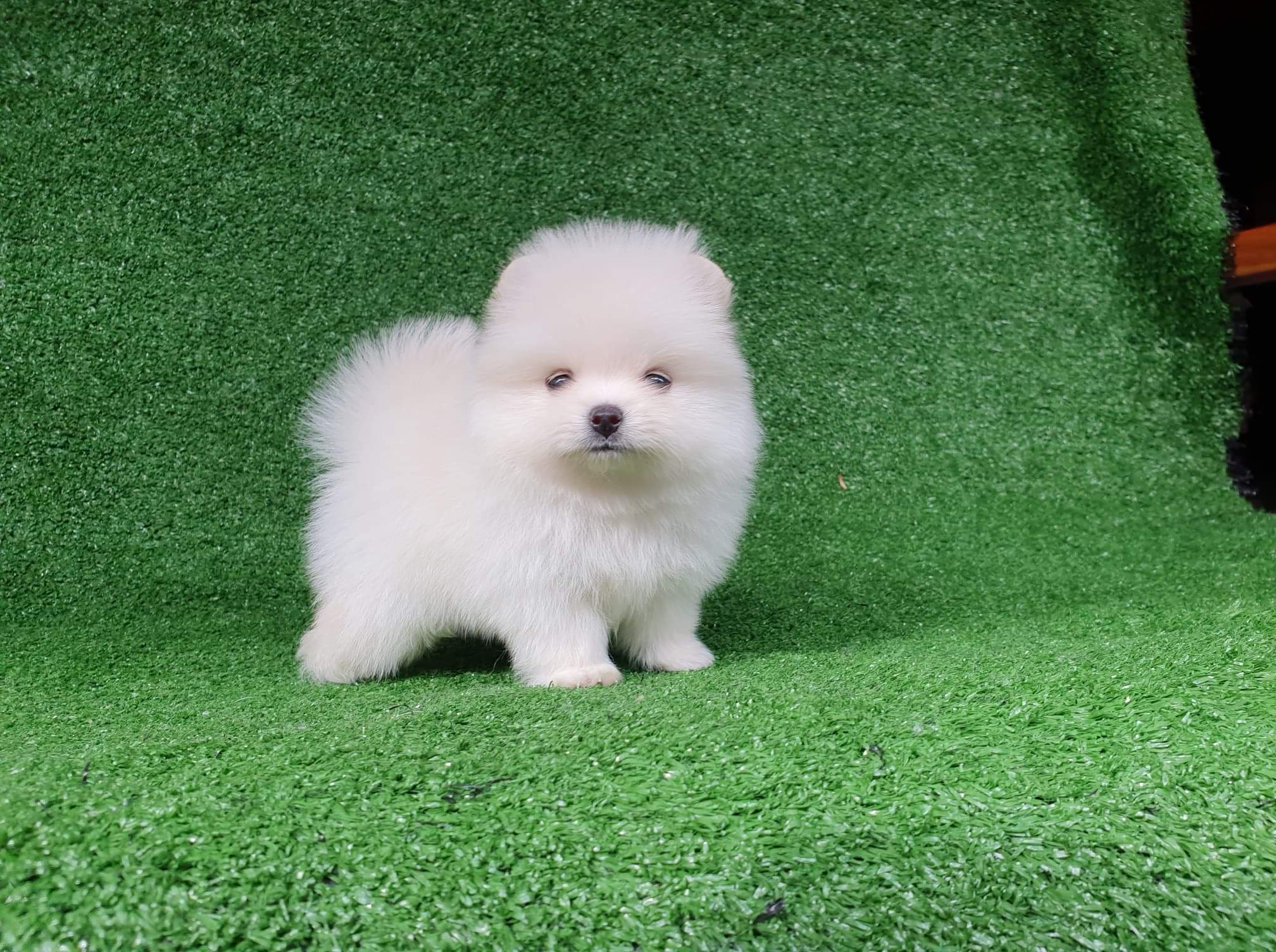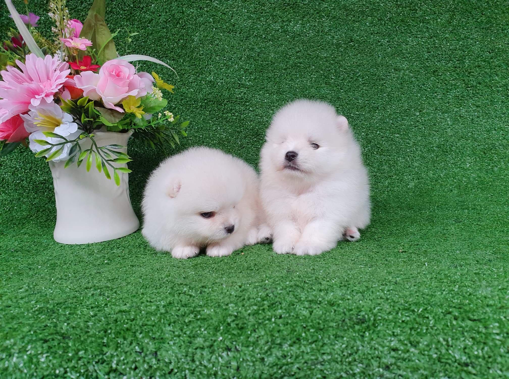 ปอมเมอเรเนียนสีขาวสำลี เกรดคุณภาพเพ็ดดีกรี เต็มใบ pure white pom for sale