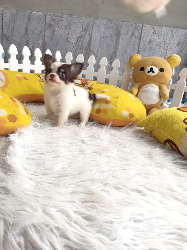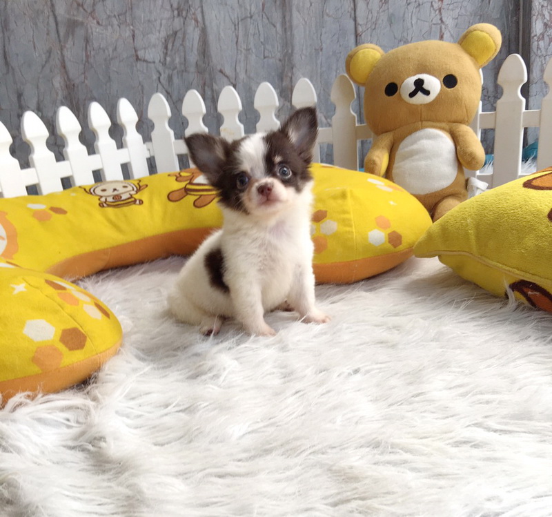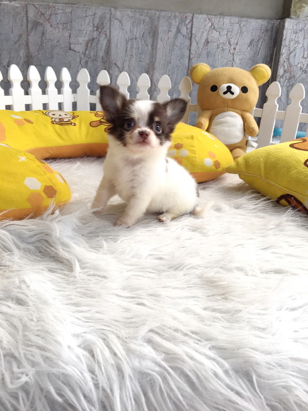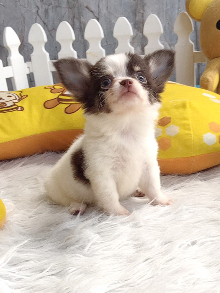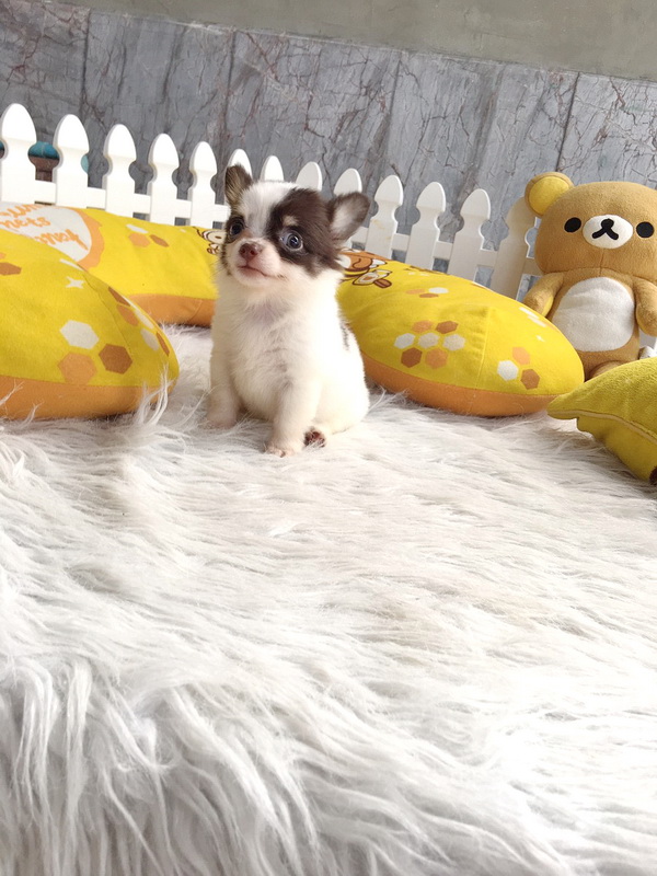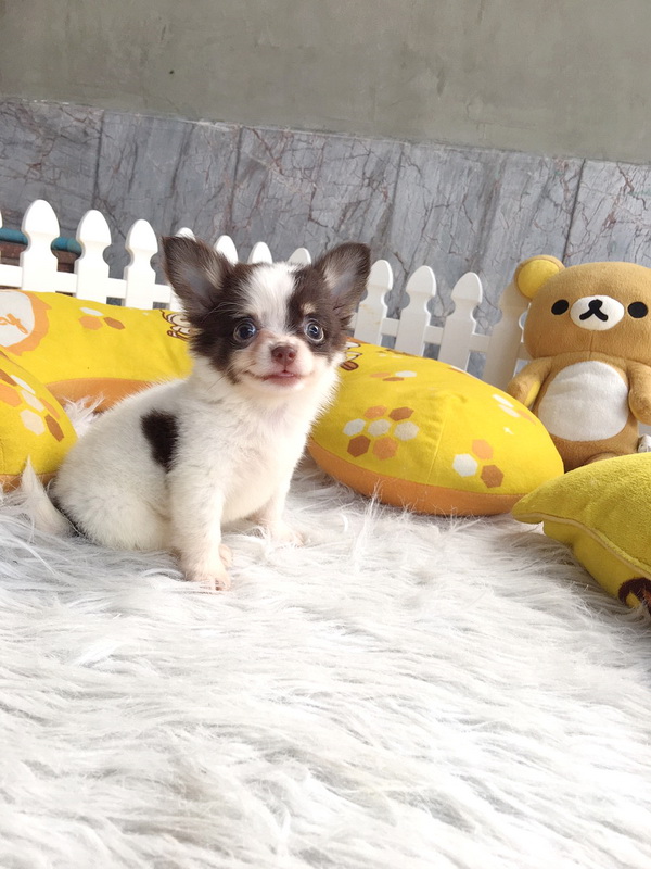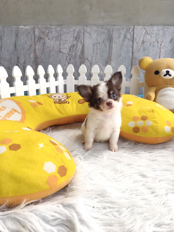 ชิวาวา เพศเมีย ขนยาว สีขาวชอคโกแลต ราคา 11000 บาท
