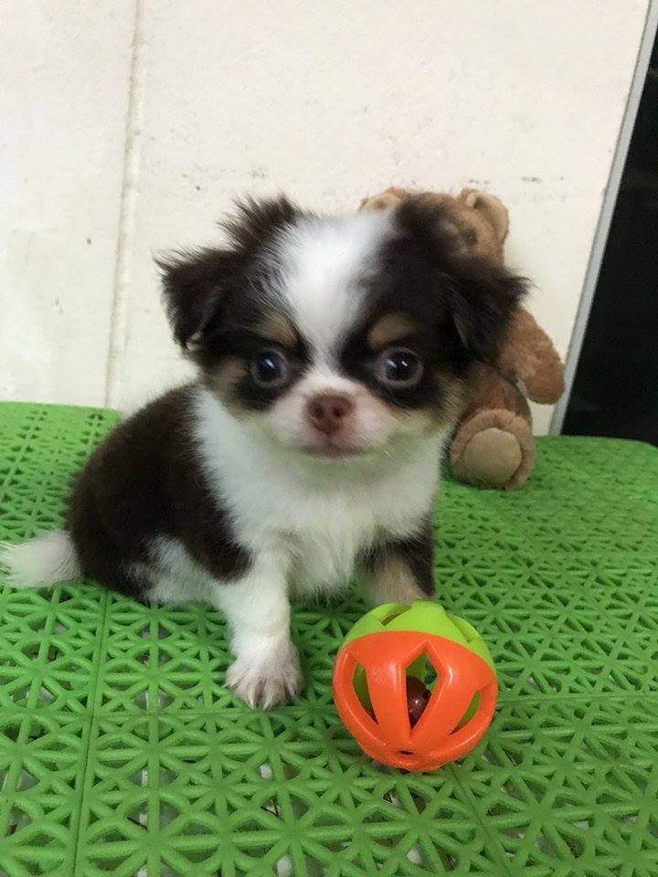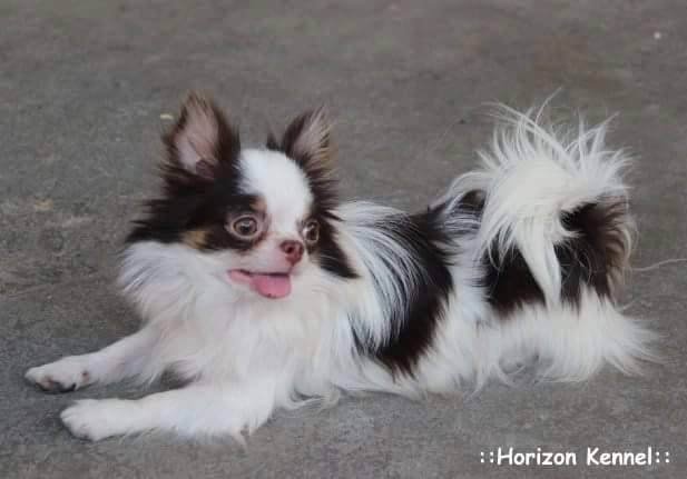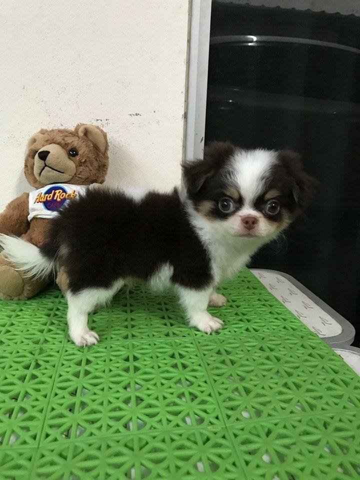 ชิวาวา ขนยาว สีขาว-ช็อคโกแลต มีคิ้ว มีแก้ม หล่อๆ