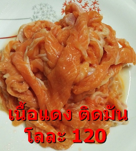 1. แซลมอนเนื้อแดงติดมัน ราคากิโลละ 120 บาท