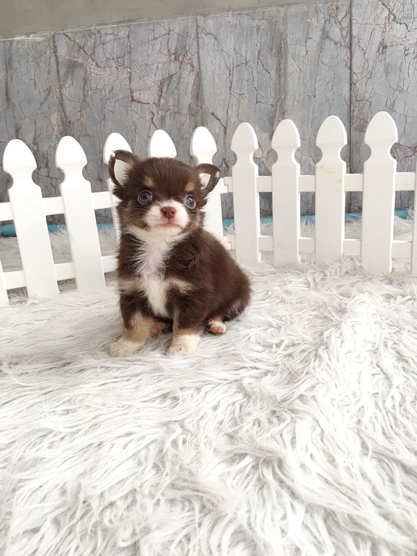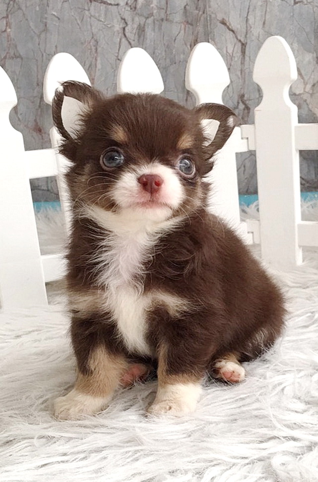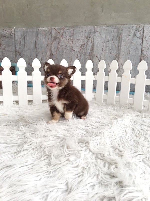 ชิวาวาเพศผู้ ขนยาว สีขาวชอคโกแลต
