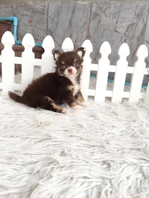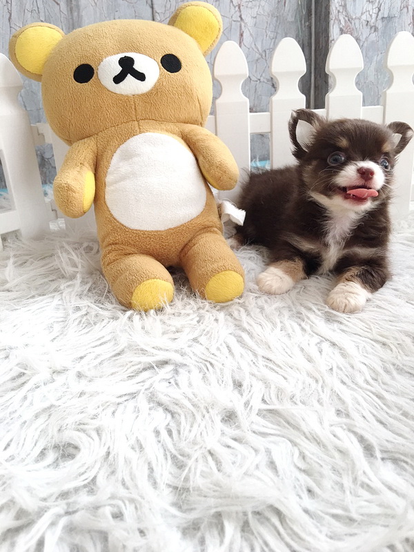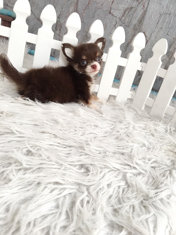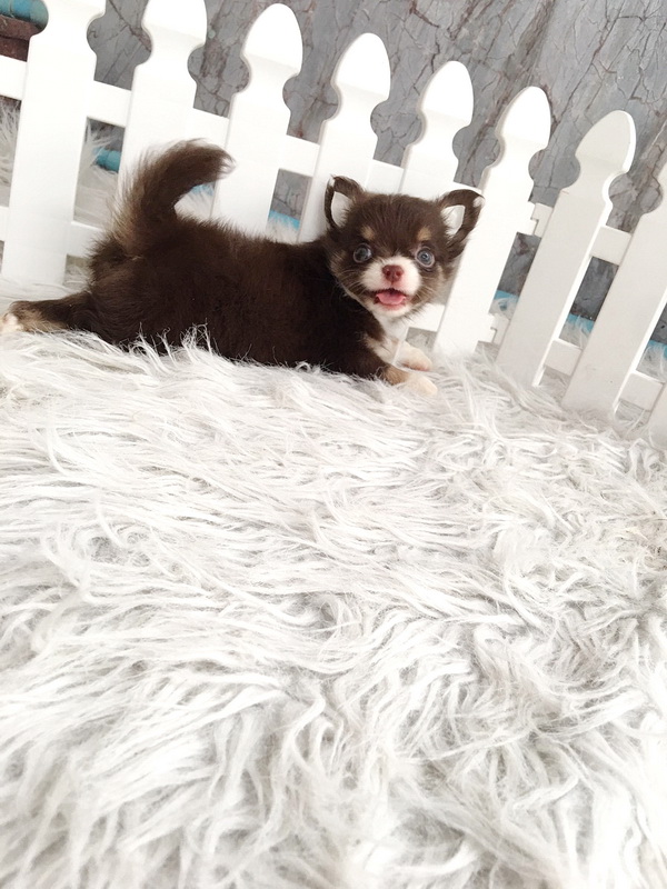 ★^-^*★ WWW.WOWWCHIHUAHUA.COM ★^-^*★." น้องปาร์ตี้" ชิวาวาเพศผู้ ขนยาว สีชอคโกแลตขาว 12500