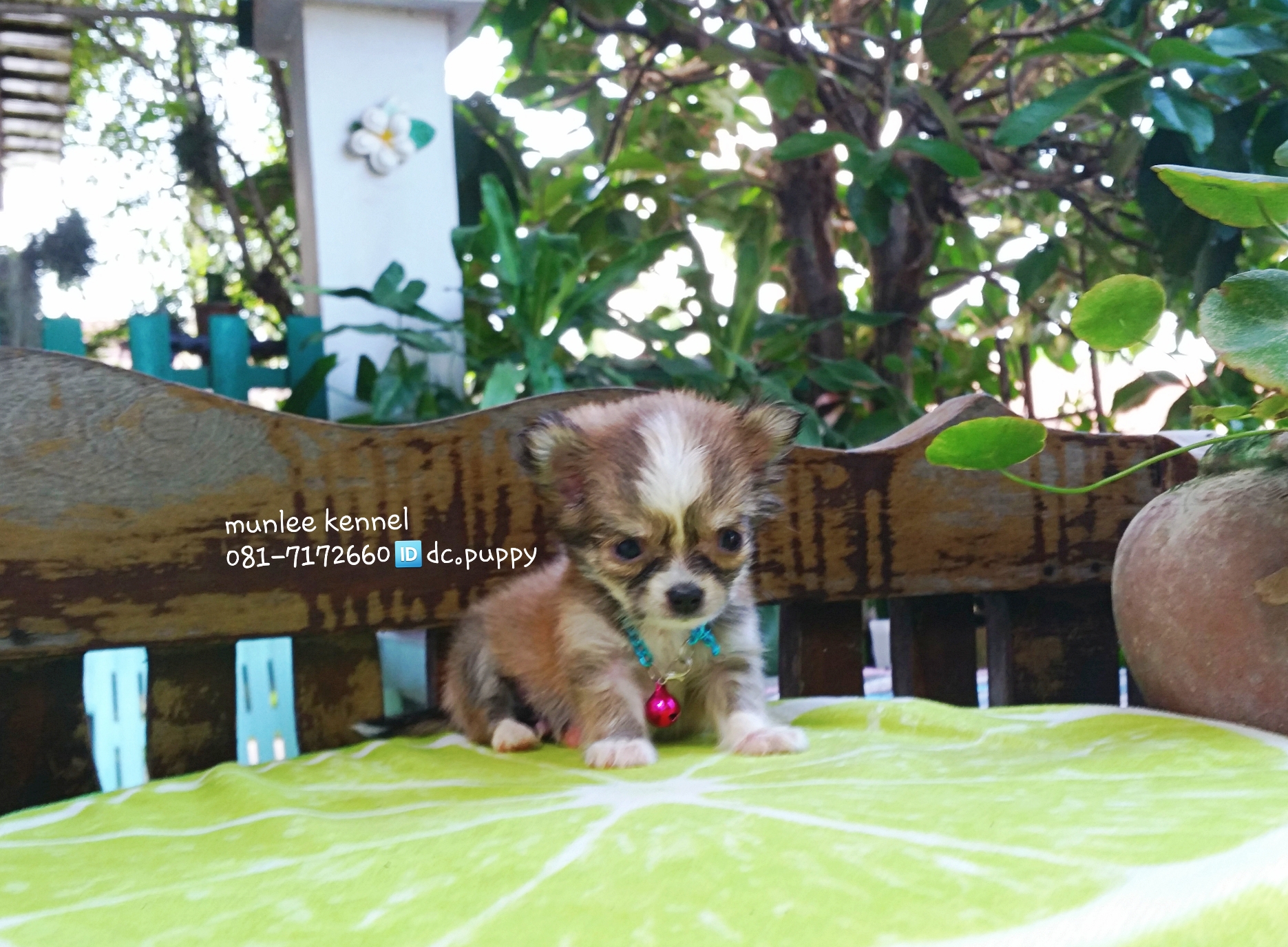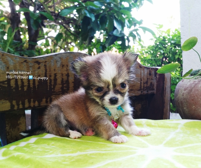 ชิวาวา ขนยาว สายเลือดดี /เพศผู้ สีน้ำตาล-ขาว
