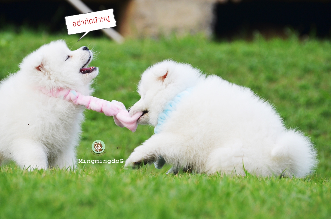 ซามอยด์ เพศผู้1 เมีย1 อายุ60วัน โครงสร้างดีมาก ขี้เล่นสุดๆ สุขภาพแข็งแรง อยู่ไทยแล้ว พร้อมย้ายบ้านเลย รับประกันโรคลำไส้-ไข้หัด แถมฟรีน้ำมันปลา 1 ขวด สนใจสอบถาม 087-3531876 line : mingmingdog