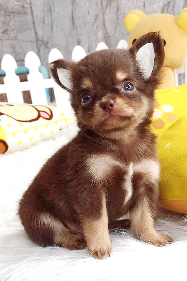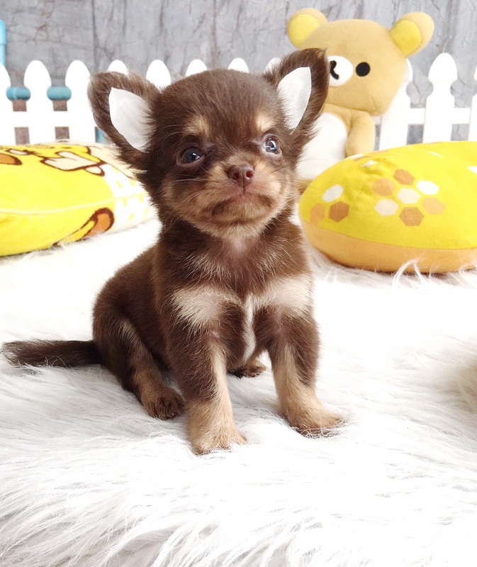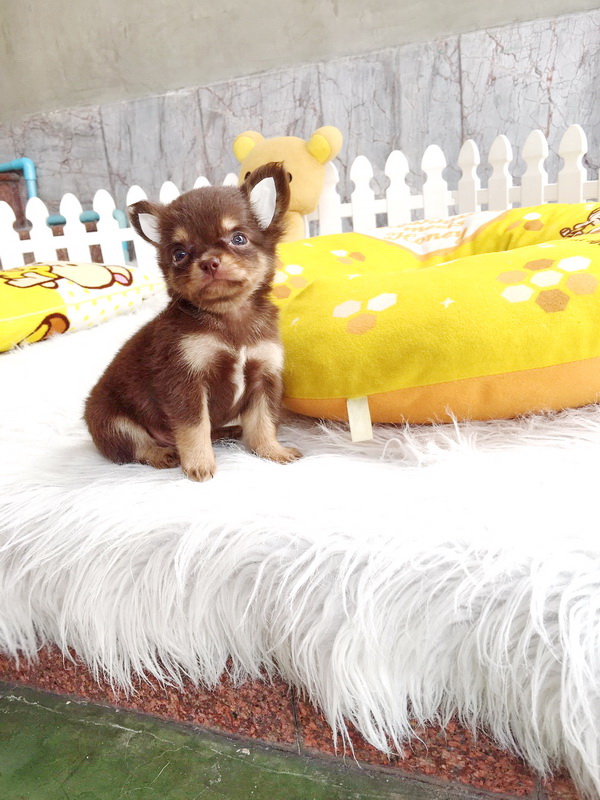 ชิวาวาเพศผู้ ขนยาว สีชอคโกแลตแทน