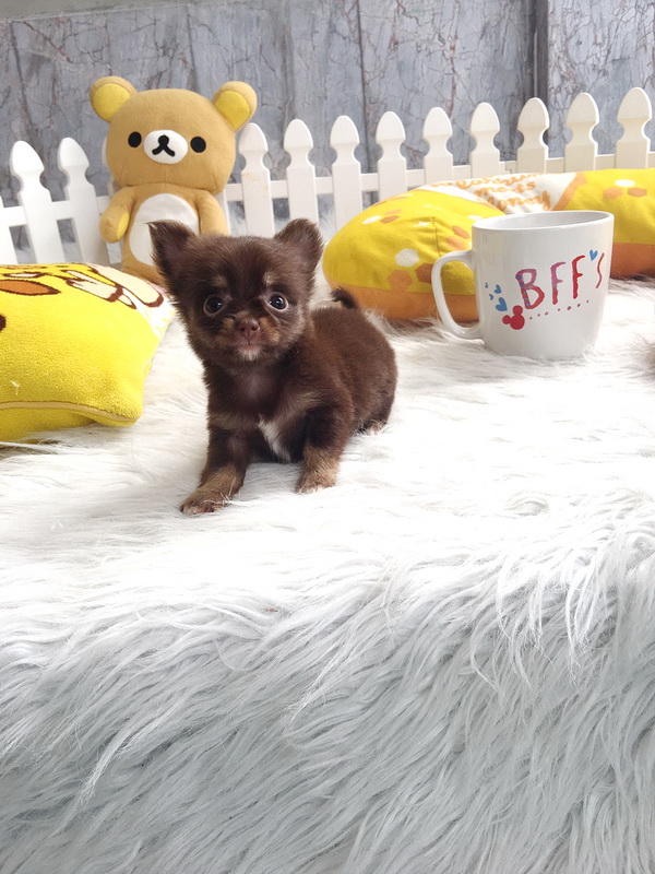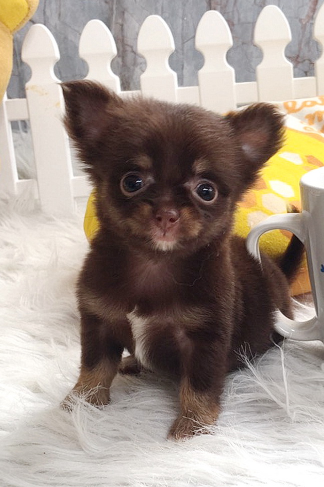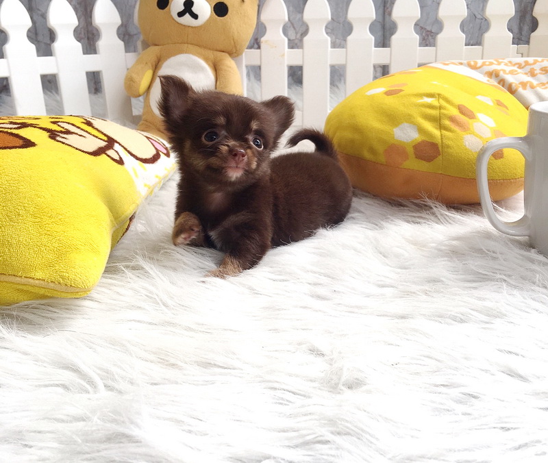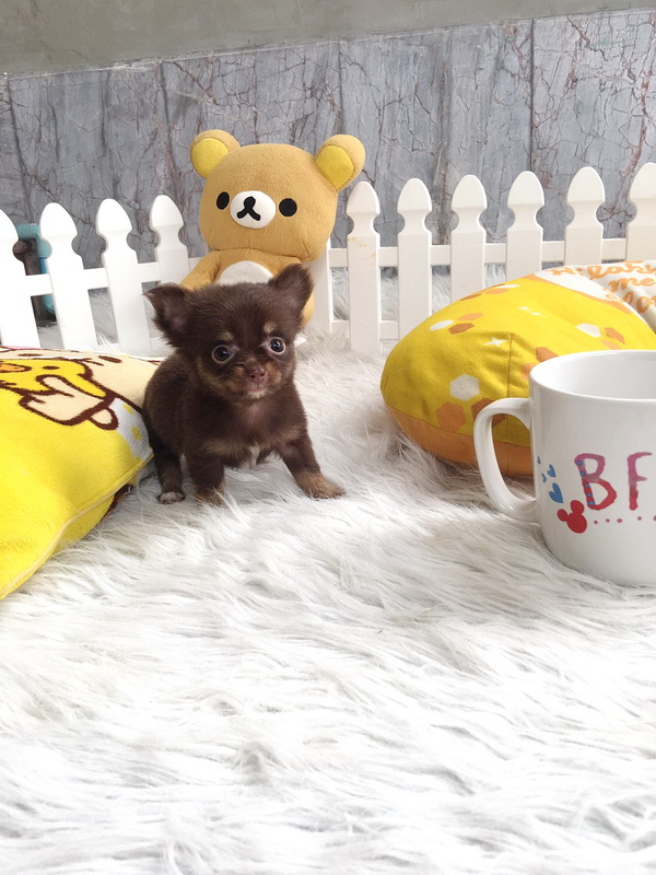 ชิวาวาเพศเมีย ขนยาว สีชอคโกแลตแทน ราคา 11500 บาท