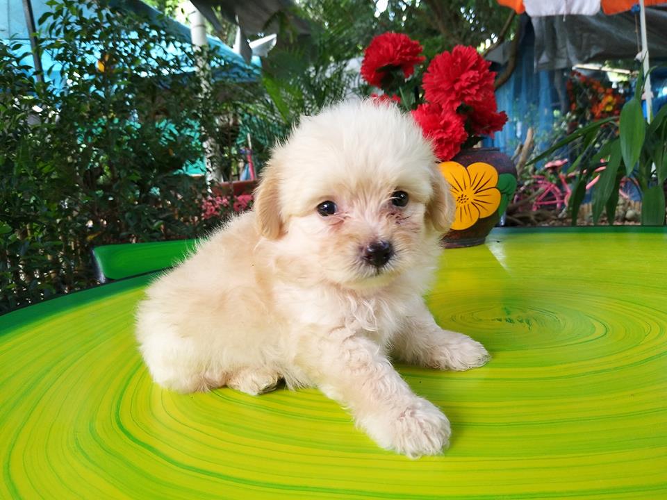 พุดเดิ้ลผสมปอม สีครีม ขนสวยๆ