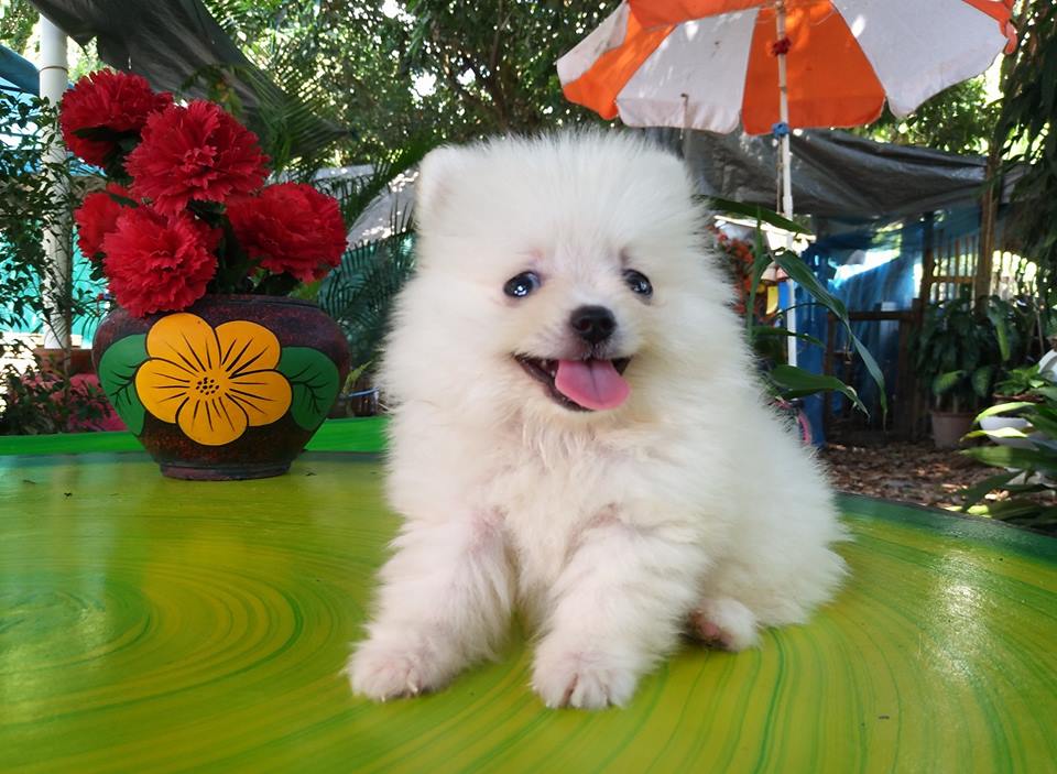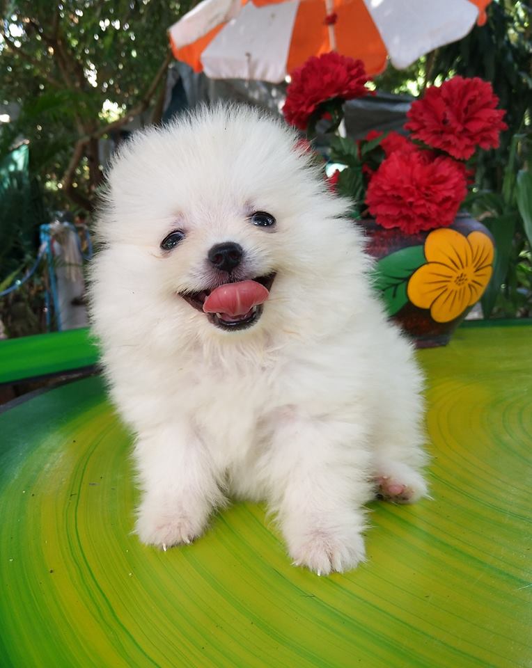 ปอมเมเรเนียนแท้ สีขาวสำลี ไซร์เล็ก น่ารัก ขี้เล่น เพศเมีย