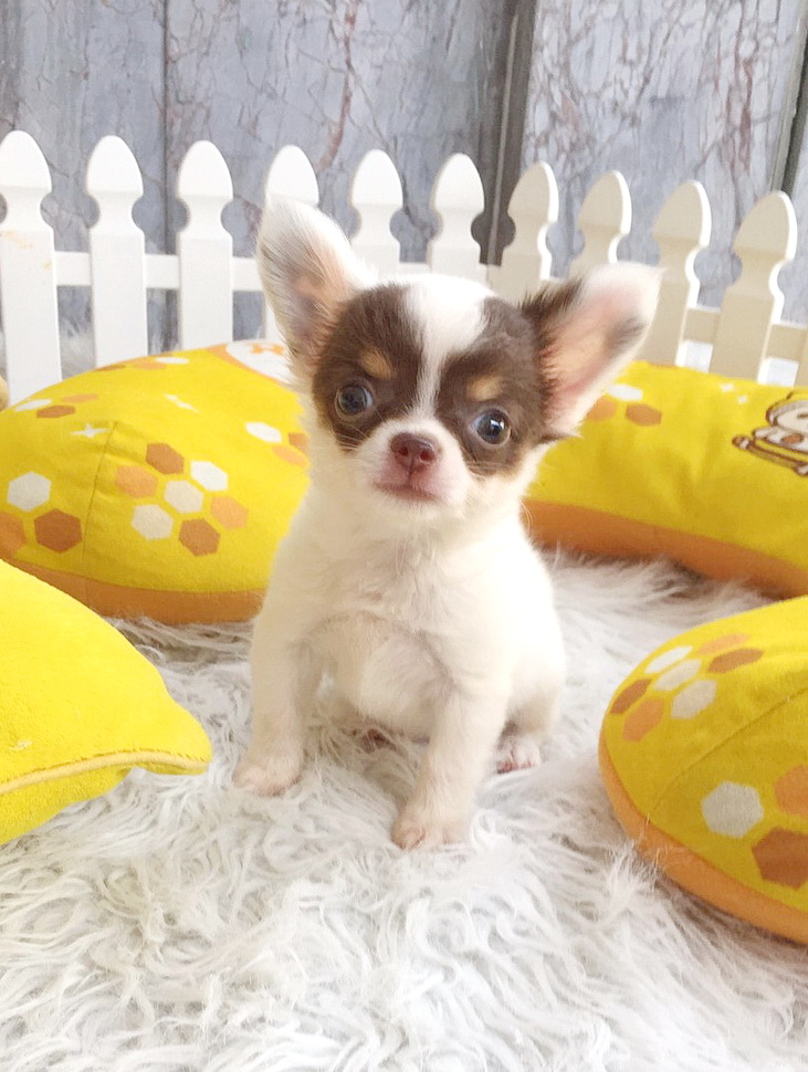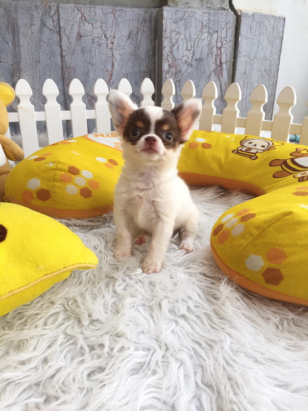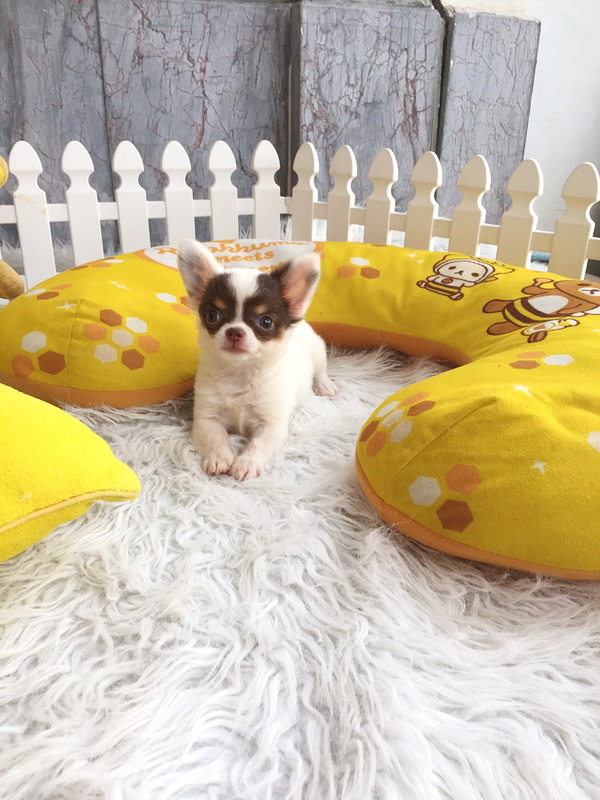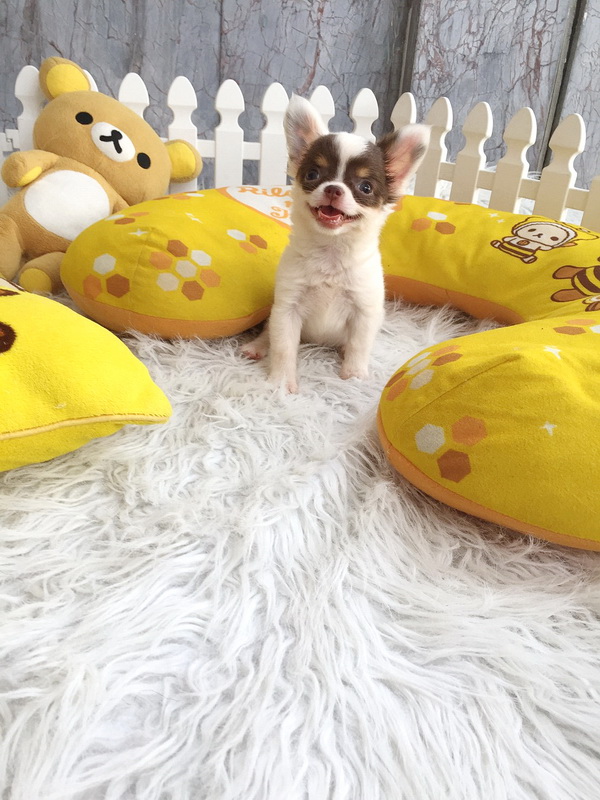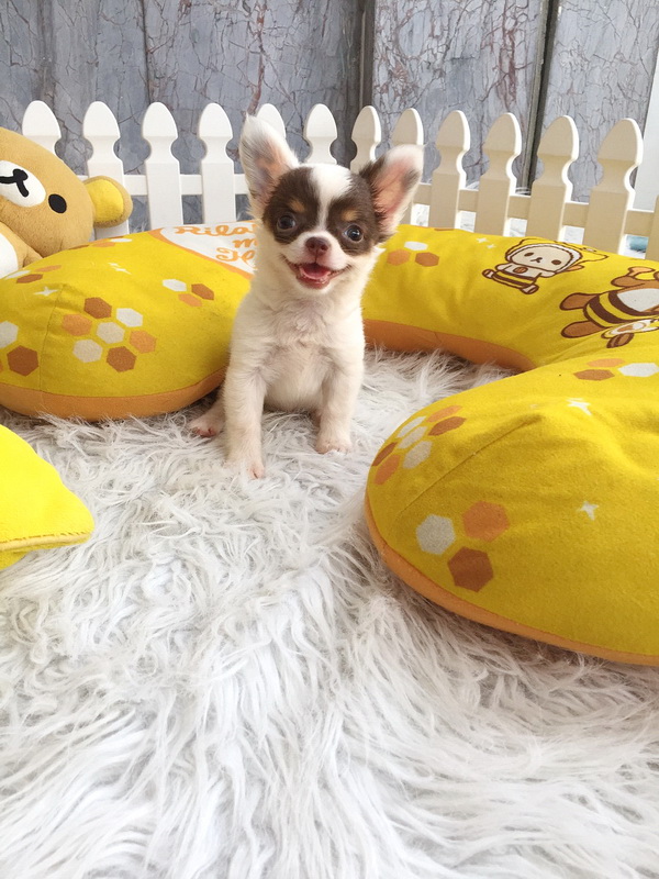 ★^-^*★ WWW.WOWWCHIHUAHUA.COM ★^-^*★." น้องโมริ" ชิวาวาเพศเมียขนยาว สีขาวชอคโกแลต 9500