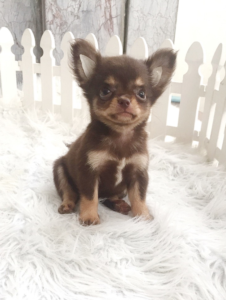 ★^-^*★ WWW.WOWWCHIHUAHUA.COM ★^-^*★." น้องวู๊ดดี้" ชิวาวาเพศผู้ ขนยาว สีชอคโกแลตแทน 9500